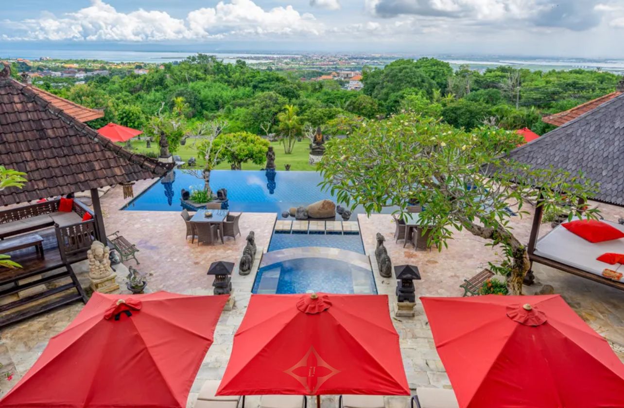 This stunning estate is located on the most coveted location on the Bukit Peninsula, offering unparalleled almost 200-degree views to the ocean from Java to Nusa Dua up to Sanur and the East Coast to Karangasem and Nusa Lembongan and of the entire island with volcanos in the backdrop, thanks to its high position on the land.