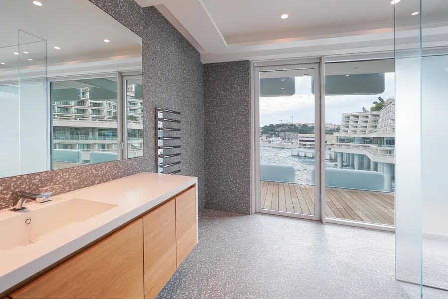 This luxury apartment impresses with its generous volumes and refined finishes. It offers 528 m² of interior space extended by 151 m² of terraces with sublime views over the sea and Monacoâs port. The living area includes an entrance hall, a spacious double living room opening onto a large seafront terrace, and a master suite featuring two dressing rooms and a sumptuous bathroom with double shower and double washbasins, opening onto a wide terrace. Two additional bedrooms, each with en-suite bathroom, dressing room, and private terrace, complete the night area.