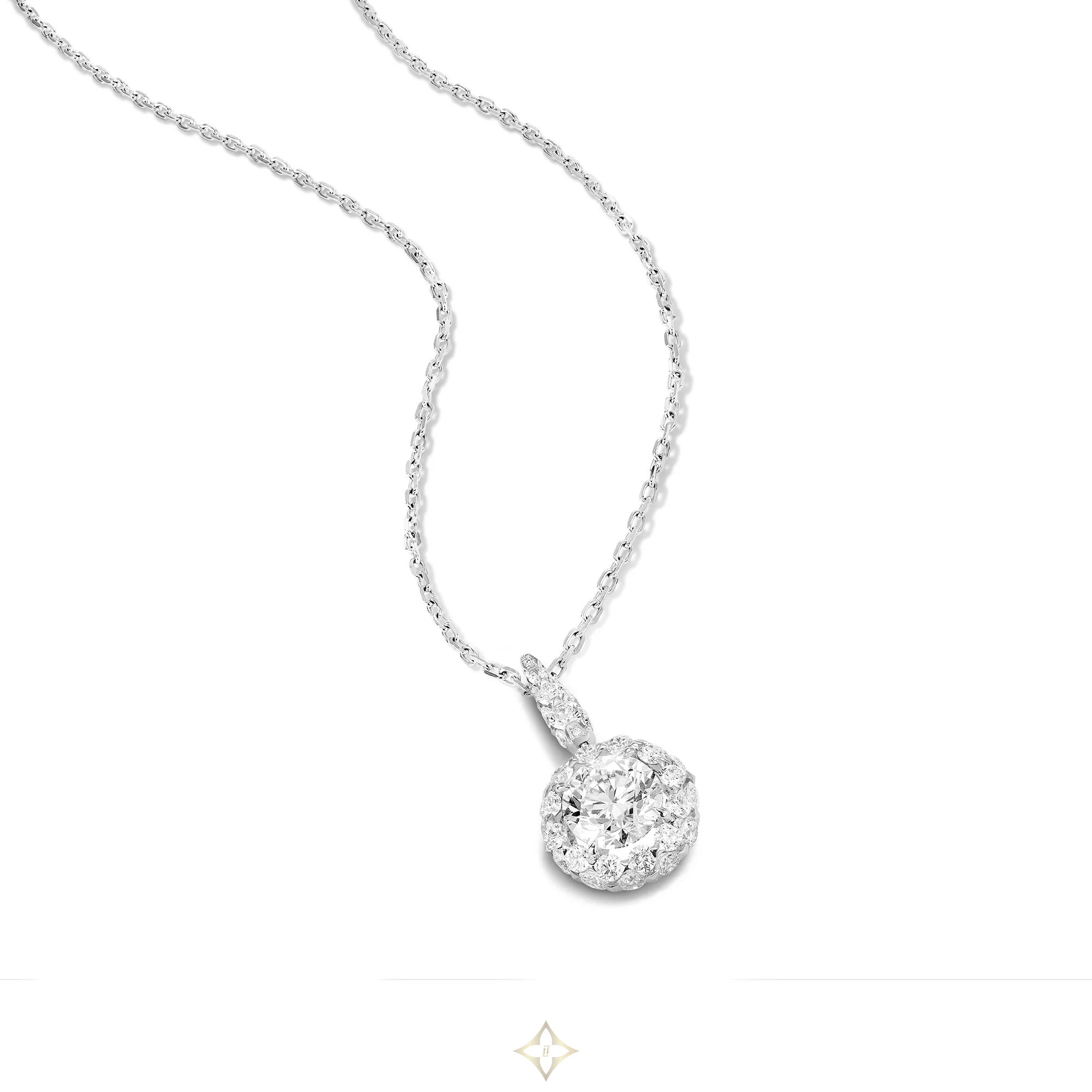 Merveilles Bridal - Diamond Necklace 18 Karat white gold PRICE: 41'300 CHF Incl. VAT Product Details Merveilles Collection - Bridal Purity, beauty and eternity: in the Merveilles Bridal collection, an abundance of light flows through continuous bands of diamonds, representing the infinite love between two soulmates. Technical Information - One round brilliant diamond 1.51 carats, G colour VS2 clarity, 1 GIA certificate - Round brilliant diamonds 1.62 carats, F colour VS clarity - 18 Karat white gold Reference NCKD 00262 ——— BOGHOSSIAN BOUTIQUE GENEVE Rue du Rhône 42, 1204 Genève, Switzerland
