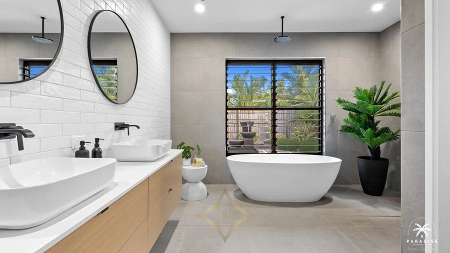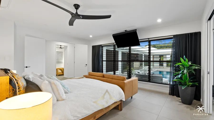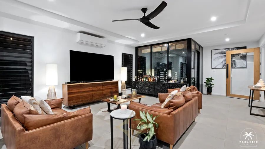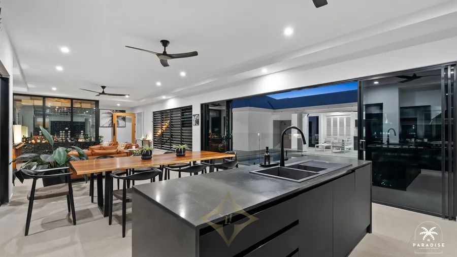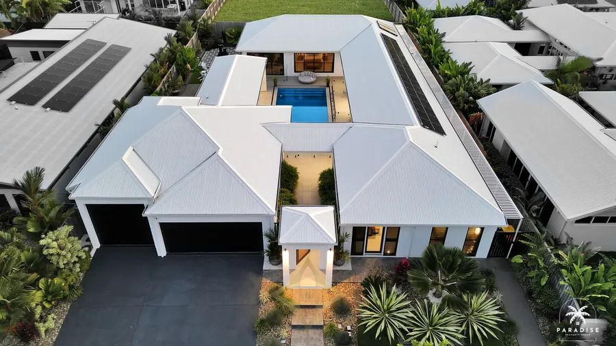 - Large 960m2 fully fenced block securely gated from front to back, professionally landscaped with modern pergola and intimate courtyards. The low-maintenance tropical gardens and coastal tuff lawns are all serviced by an automated watering system.