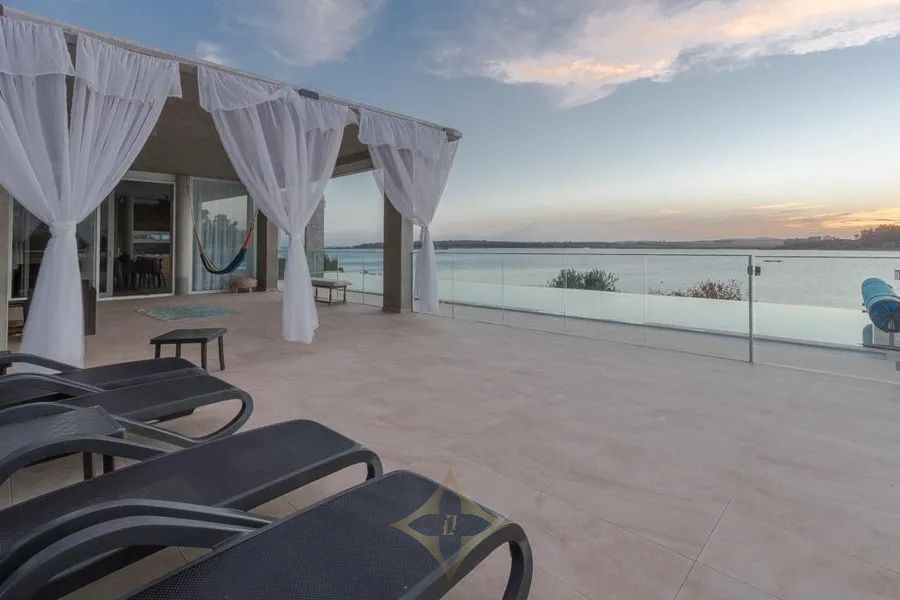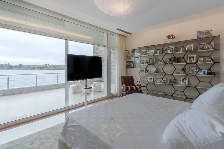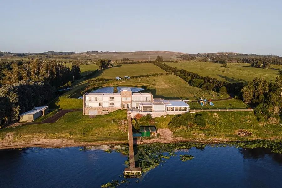 This modern country estate, located in an unbeatable spot directly facing the Laguna del Sauce, boasts a special, distinctive, and daring design. It stands on an 18-hectare plot, and its construction of over 1700 m² with 6 bedrooms makes this a colossal property. Built in 2017, it features electric radiant heating, electric blinds, a heated swimming pool, 2 service apartments, two water wells, all based on a design by architect Eleonora Delle Onde.