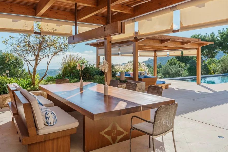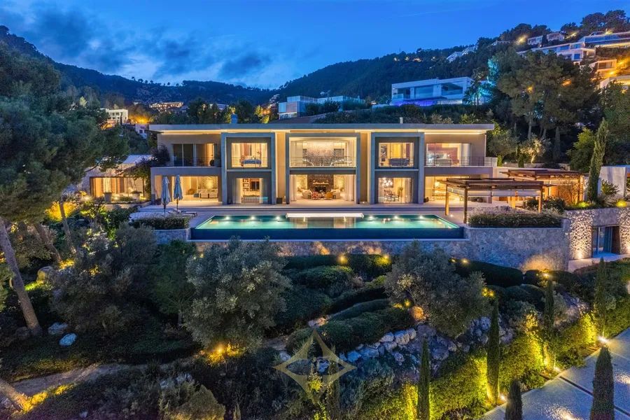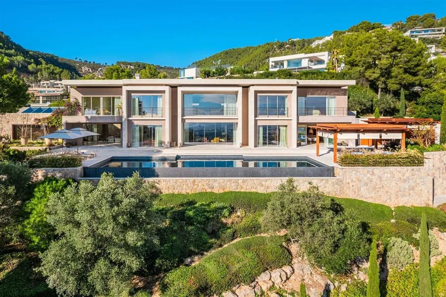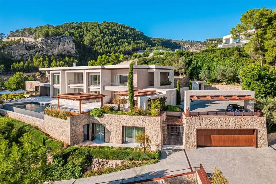 Located on an elevated triple lot in one of Mallorcas most luxurious neighbourhoods, Son Vida. Frequently known as the Beverly Hills of Mallorca, Son Vida is a residential area surrounded by 3 prestigious golf courses (Son Vida Golf, Golf Son Muntaner & Golf Son Quint) which offers a 24h security guard throughout the year. Can Camos was completed in 2019, and was built to the highest possible standards of construction and engineering. The architects were tasked with not only creating a timeless modern masterpiece, but also a family home. Whilst offering a vast living area of over 2162m2, the living spaces are both practical and cosy. The property is accessed via a comfortable private gate, which leads up to an impressive main patio and a 3 car carport. Through impressive 12m framed entrance you are guided to the main entrance of the property on the ground level. The ground floor is designated entirely for living, entertaining and wellness. With a large formal living room with feature marble fireplace, incredibly high ceilings, an open planned living/ dining area which is fully equipped and designed for catering and staff which have their own internal staircase. Furthermore there is a private study, a fully equipped private spa, a heated indoor pool with smart anti humidity technology, a fully equipped home gym, turkish steam bath, a yoga room, changing facilities and 2 guest cloak rooms. The first floor which is accessed via a grand staircase comprises entirely of 4 spacious rooms, which include 2 comfortable guest suites, a beautiful VIP suite and an incredible Primary suite. All of which have built in closets, bathrooms en suite and access to a private terrace. The main pool area is accessed via the ground floor, a unique 20m long swimming frames the spacious terrace area and enjoys panoramic views over the city of Palma and the Bay of Palma. In the evenings, whilst the iconic Palma cathedral takes center stage in the view, the lights of the surrounding city can be enjoyed from the chill out area and the summer kitchen. In addition to the main house, the property features 2 independent guest houses, which can be accessed externally without needing to enter the main living area. Offering a total of 3 extra bedrooms, with 2 kitchens, 2 bathrooms and living areas, as well as an additional staff house which includes 1 bedroom, a bathroom and a living room. Sat on a comfortable plot of over 6045m2, the property offers complete privacy only 10 minutes from Palma city center and 20 minutes from Palma airport.
