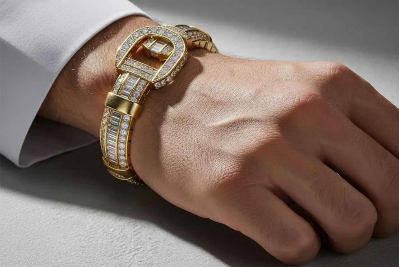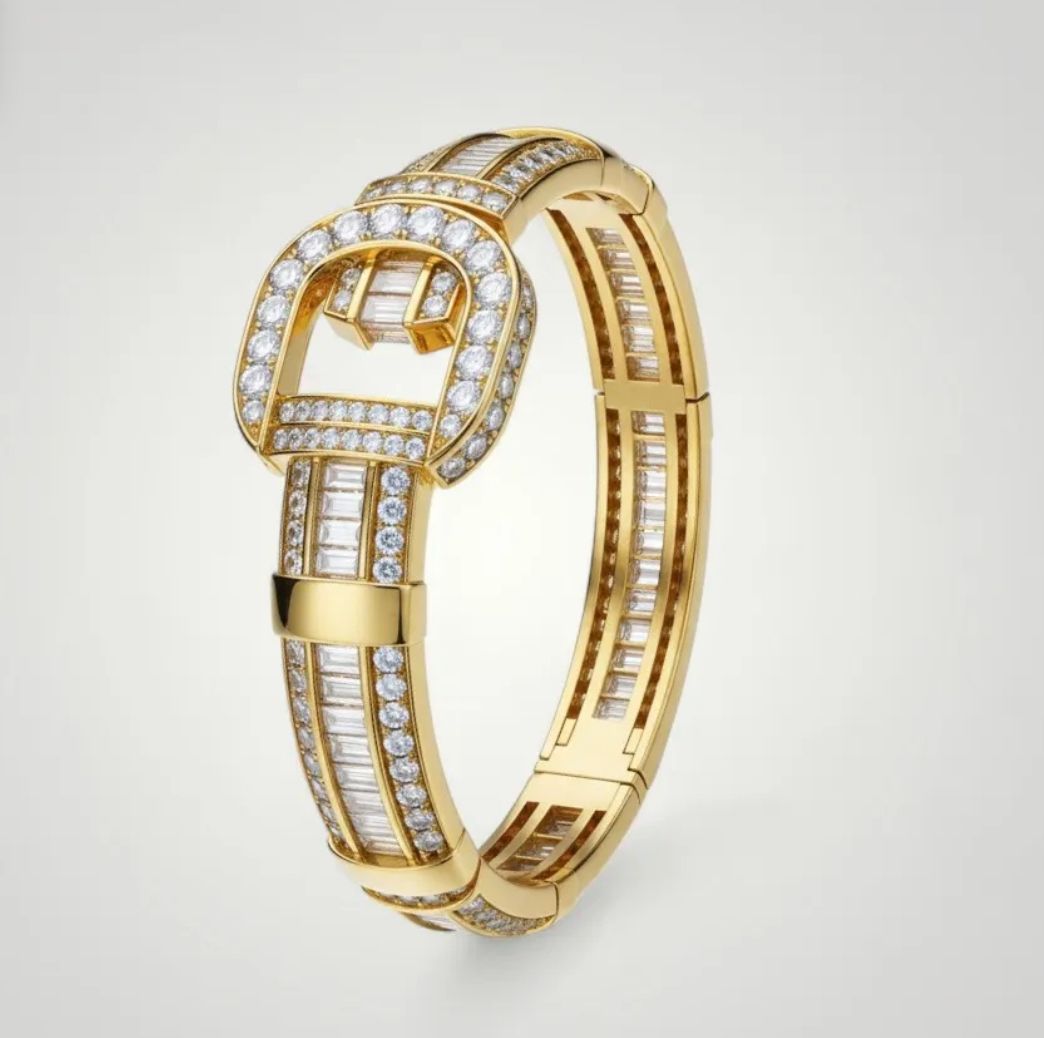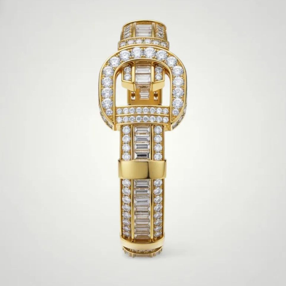Three lines of diamonds, polished surfaces and a pertect luminous rhythm transform the wrist into a setting of light, a living jewel that tells the emotion of high jewelry.