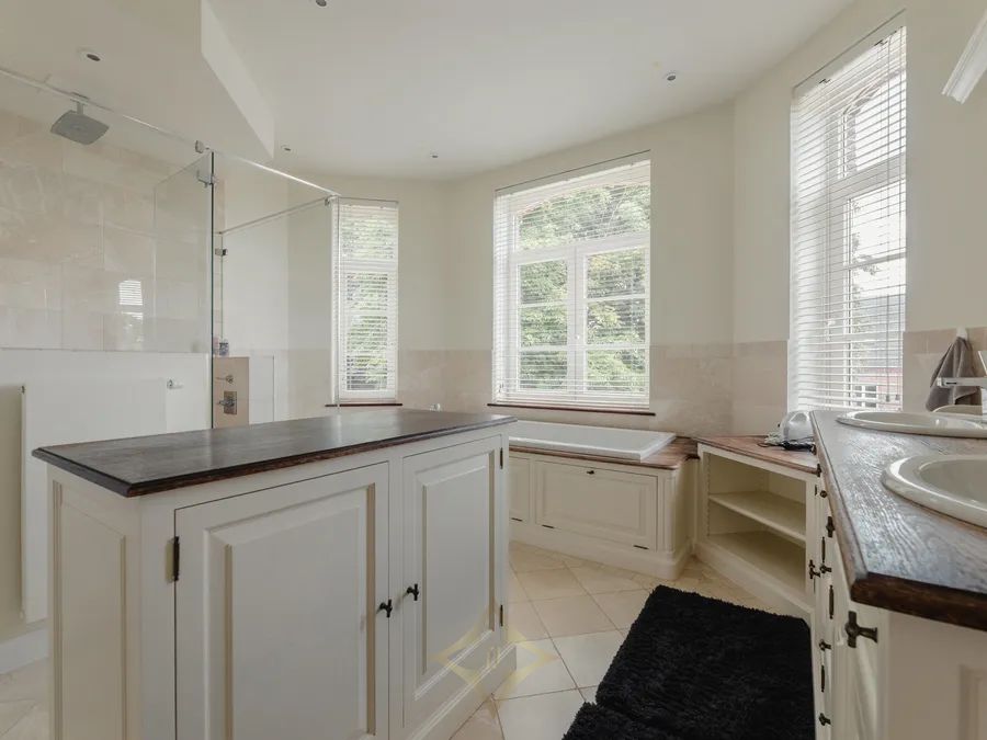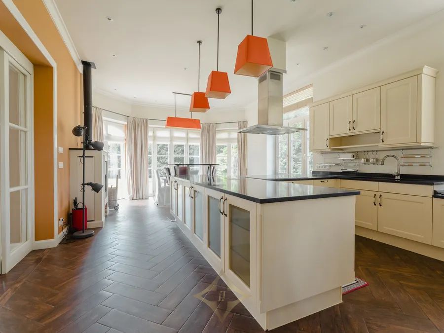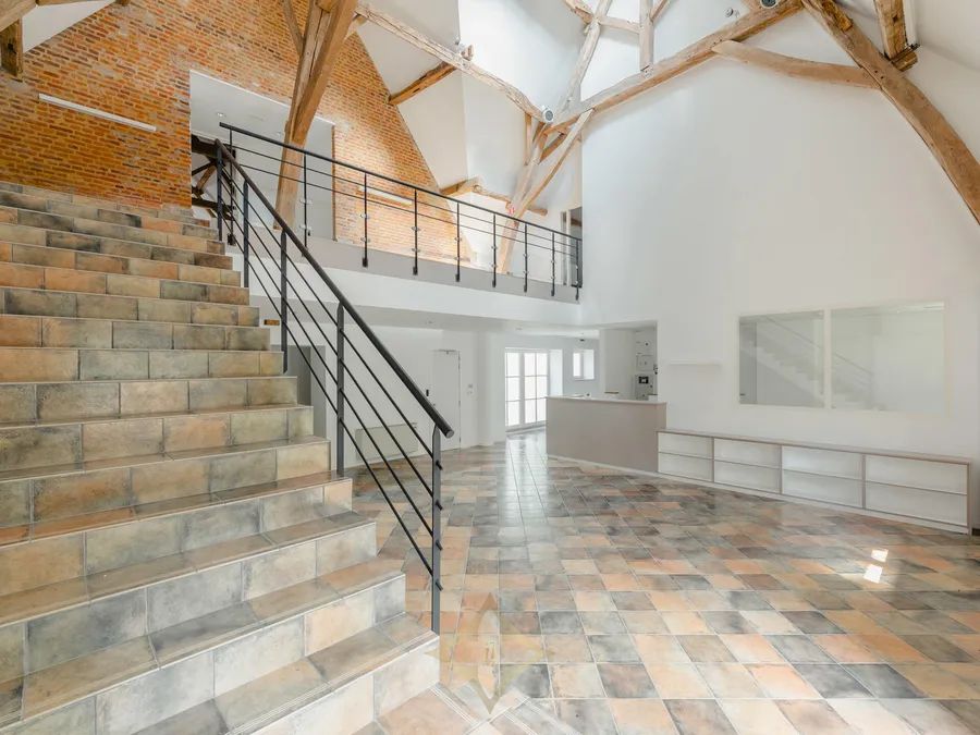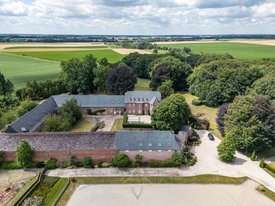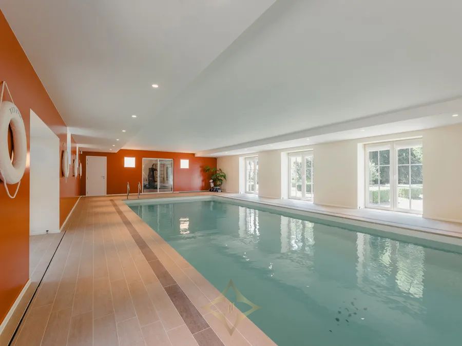 The main house, completely renovated in 2014, offers approximately 870 m² of living space. It features generous volumes: several lounges, dining room, office, fully equipped kitchen, 7 bedrooms, multiple bathrooms, and a wellness area with indoor pool, gym, and elevator serving all floors. Three independent apartments comfortably accommodate guests, family, staff, or tenants — each with living room, kitchen, and one or two bedrooms. The professional area includes an office building of ±610 m² with separate entrance, a reception hall of ±190 m², and a ±600 m² hangar divided into garages, one of which is equipped with a car lift. Equestrian facilities include stables, paddocks, lunging ring, track, tack room, and storage spaces.