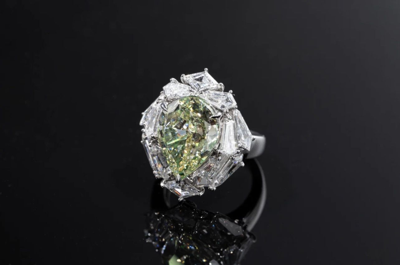 Natural Fancy Green Yellow Pear Shape Brilliant Cut Diamond Ring 天然綠黃梨形鑽石戒指
