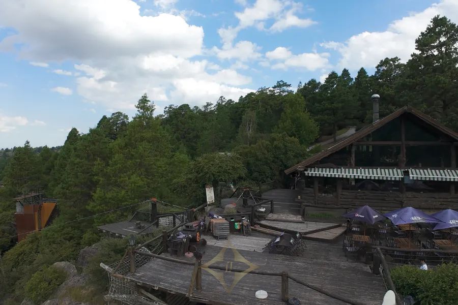 The mountain lodge, offices, and restrooms were built using local cypress logs and are decorated with furniture and fixtures made from deer antlers brought from Bariloche, in Argentine Patagonia. These structures cover a total of approximately 1,300 m².