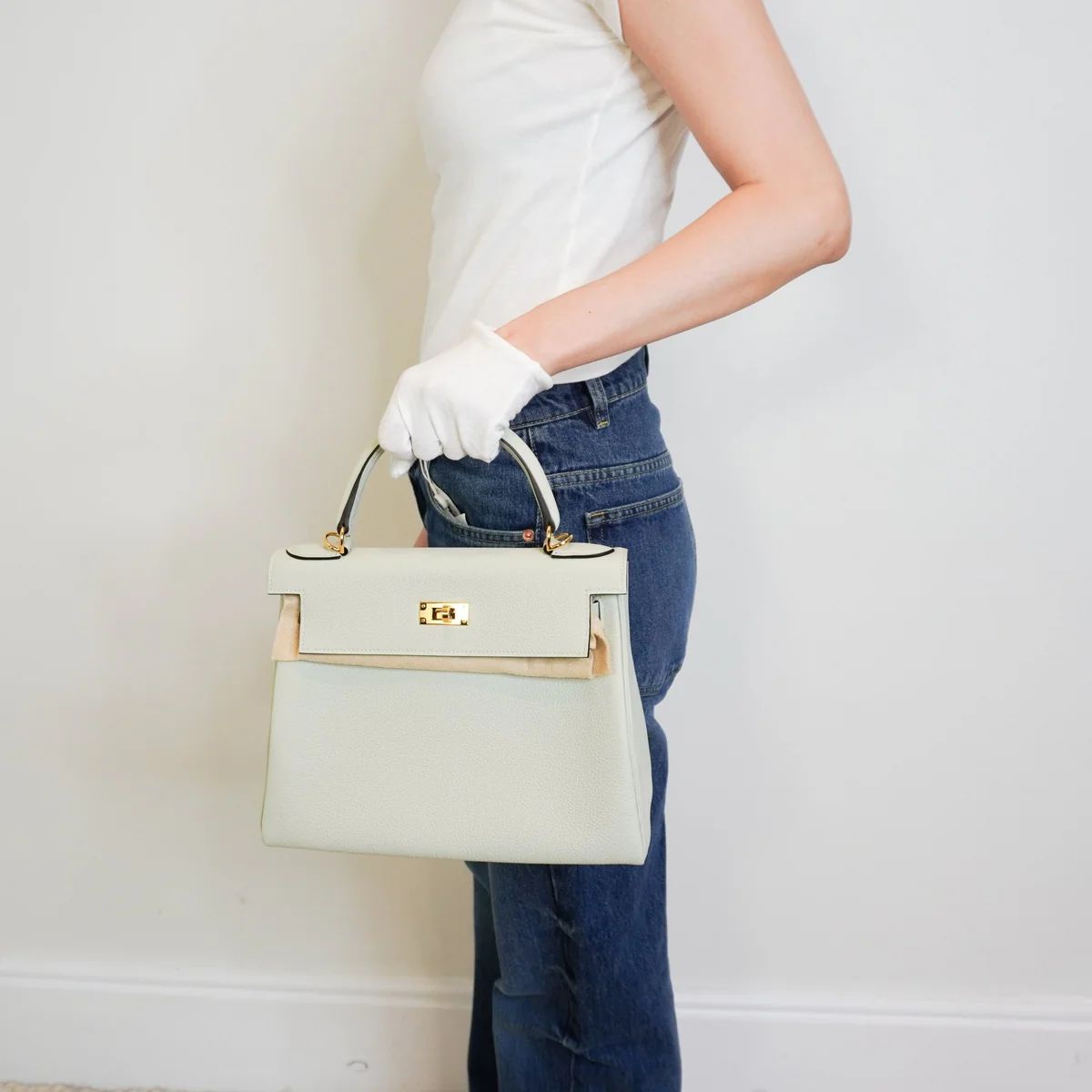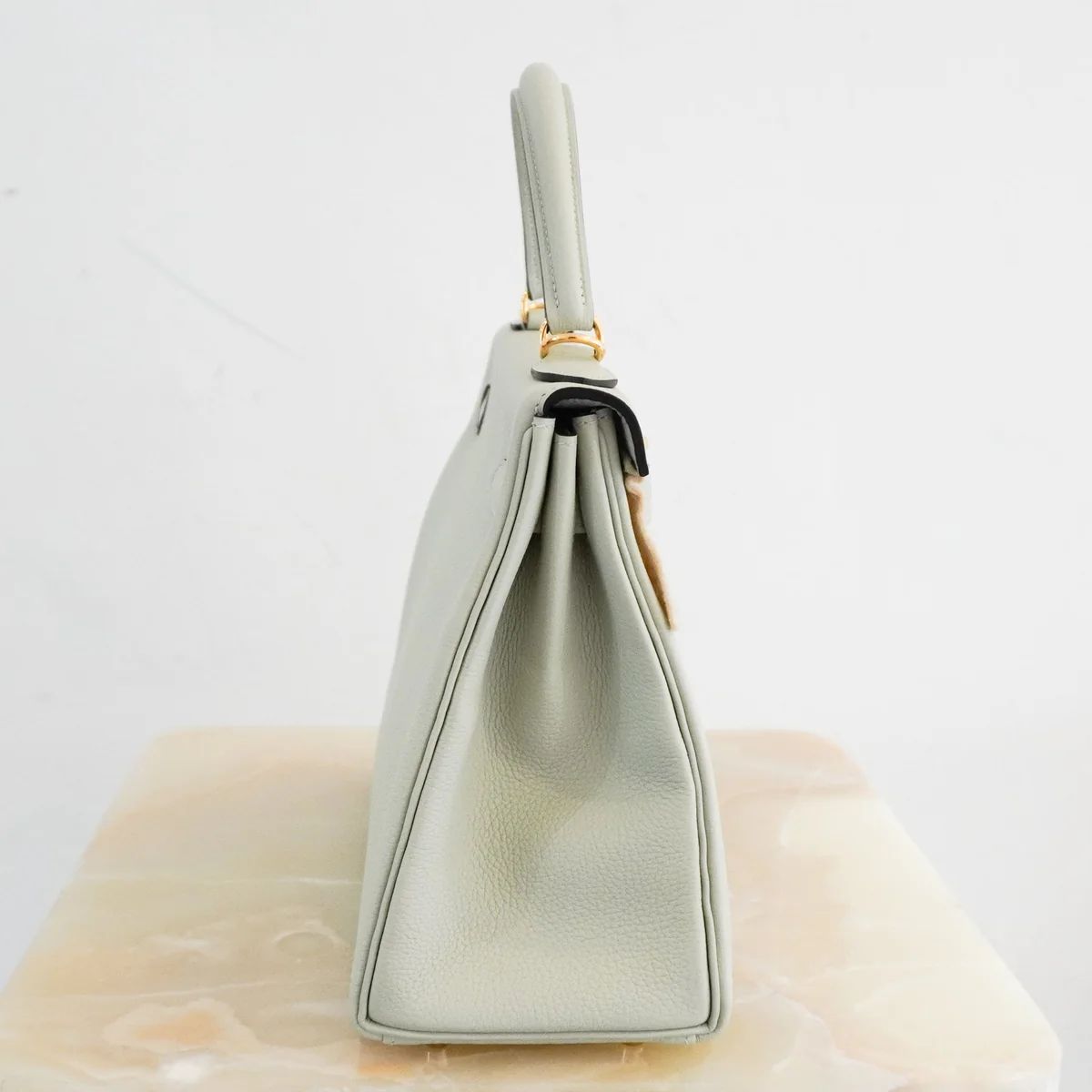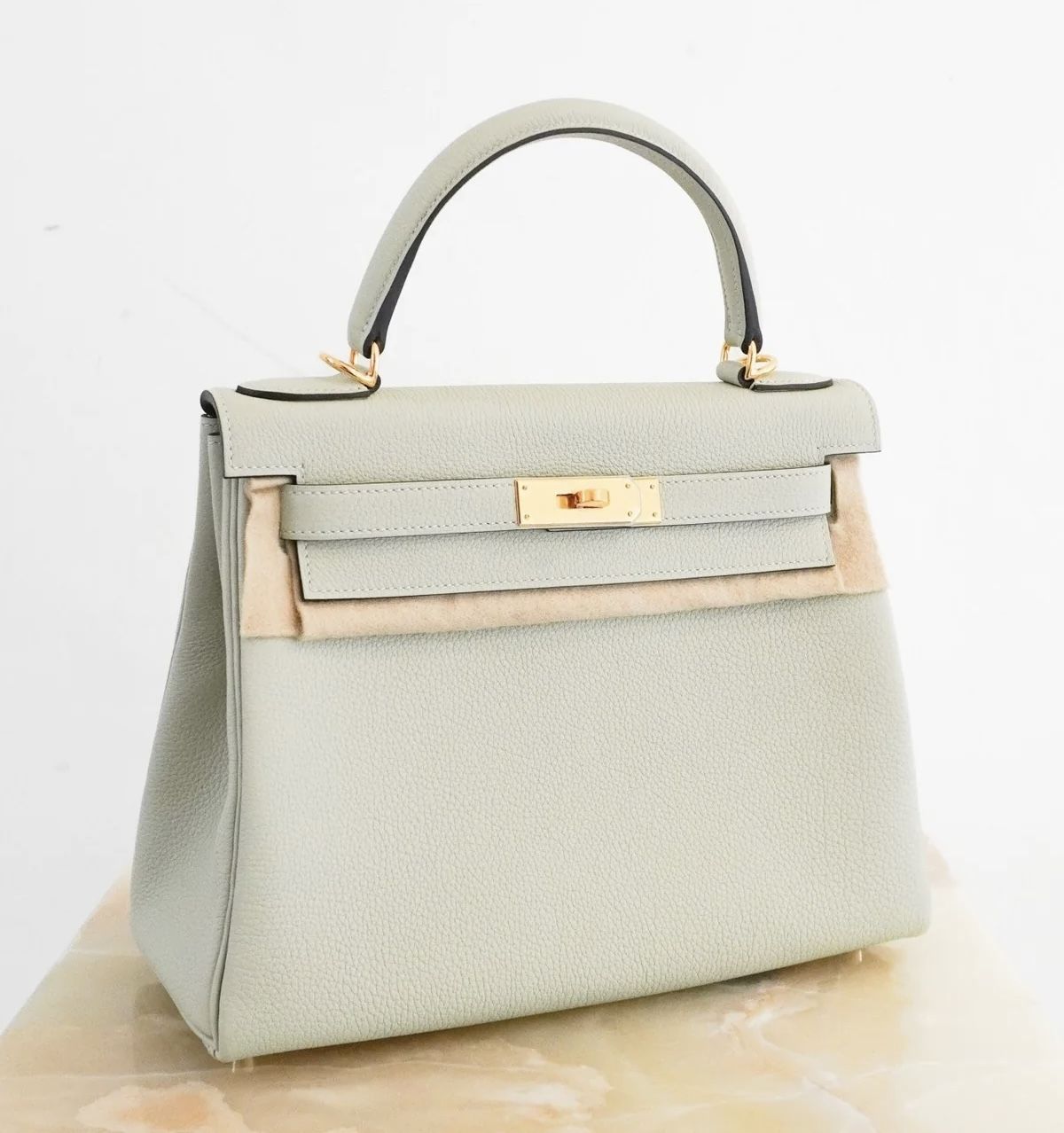 NEW HERMÈS KELLY 28 GRIS NEVE TOGO RETOURNE GOLD HARDWARE | AUTHENTIC PRELOVED SALE PRICE: £16,500.00 DESCRIPTION -This is the Hermès Birkin 28 Gris Neve Togo Retourne Gold Hardware bag. -Crafted from premium Togo leather, known for its durability. - In the most luxurious gris neve colour way which is super rare. -This bag features leather top rolled handle, a front flap, and a turn-lock closure. -The interior includes both zip and slip pockets which easily fits a phone, keys, wallet, makeup, and daily essentials. -The bag will arrive with the Hermes lock and keys inside the clochette, and the detachable strap. Has the original receipt. In this colourway there are only two available worldwide on the resale market. Comes with the original dust bag, box, ribbon. Due to the Value of the bag please message us before purchasing for final shipping fee. Serial Code: BST355 - bought in 2023 from Hermes Bond Street London. Condition: New. Measurements: Base length: 28cm Height: 23cm Depth: 13cm Handle Drop: 10cm Material: Togo leather The authentication process is carried out by our in house team with many years of experience in selling new and pre-owned designer pieces. We have an extensive process that all goods have to pass before reaching our website. ——— Reloved Again VAT No.: 378954038 123a King's Rd, London SW3 4PL, United Kingdom Phone: +44 7464 153 695