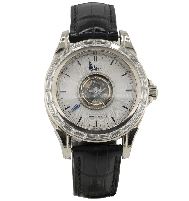 A sublime expression of the art of watchmaking, each OMEGA De Ville Tourbillon is a unique, hand-crafted timepiece that blends stunning beauty with ground-breaking innovation. These timepieces feature OMEGA’s exclusive Central Tourbillon movement, set in a tourbillon cage protecting it from the effects of gravity. LIMITED TO 100 PIECES. Declaring its exclusivity, the number 3 (3 of 100) is written on the dial.