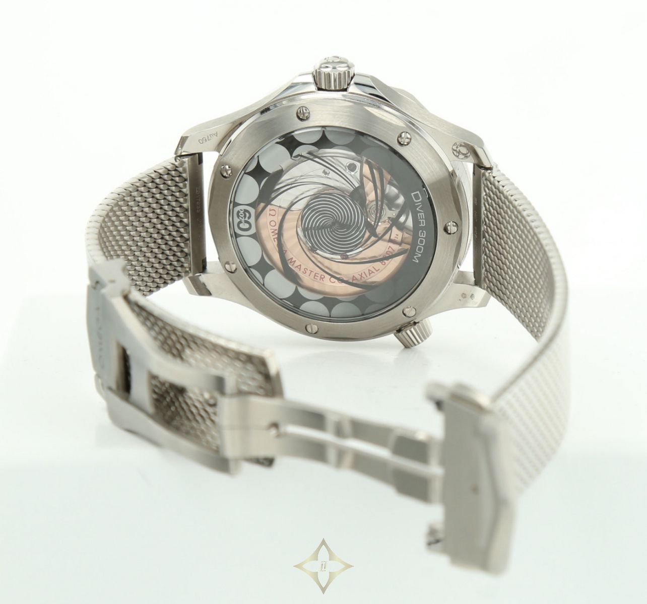 Water-resistant to 300 meters. The caseback is stamped with the inscription "007" 60 th Anniversary.