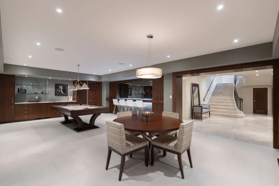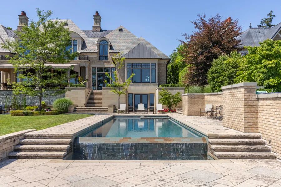 2054 Lakeshore Rd. East is one of Oakville’s finest lakefront estates. Situated on 1.5 acres and 166 feet of pristine shoreline, complete with dock, deck, and stairway access to the water. Designed by renowned architect Gren Weis and brought to life by the exceptional craftsmanship of Coulson Fine Homes. This magnificent 7-bedroom, 13-bath home spans an impressive 18,764 square feet. Step into the grand formal entrance where limestone cast walls create a dramatic first impression serving as a prelude to the extraordinary spaces beyond. The residence showcases 12 foot ceilings on the main level, Brazilian walnut flooring thru-out and custom cabinetry adorns this remarkable home. The estate features an expansive living and dining room with breathtaking water views, perfect for intimate gatherings or grand celebrations. Step outside to the covered terrace where you can relax to the sounds of the ”Bellagio” inspired fountains and waterfall. The gourmet open-concept kitchen flows effortlessly into the family room where water views and fireplace create a relaxed and comfortable space. The lower-level transforms into an entertainer’s paradise, with a state-of-the-art home theater, gym with direct access to the infinity edge pool, steam room, golf simulator, wine cellar, billiards area with rec room and catering kit. A private 2-bedroom nanny suite with separate entrance provides additional flexibility. An elevator gives you convenient access to all 5 levels of this thoughtfully designed home. The outdoors offers multiple entertaining areas nestled within the manicured landscaped grounds, the lakefront deck and poolside. The power screened sunroom offers 3 season enjoyment of the stunning surroundings. His and Her double car garages to accommodate 4 vehicles with additional parking for 20 more on the circular driveway and auxiliary parking areas-perfect for hosting memorable events. This waterfront estate represents more than just a home it’s a lifestyle statement where every detail has been carefully curated to create an environment of uncompromising luxury and comfort.