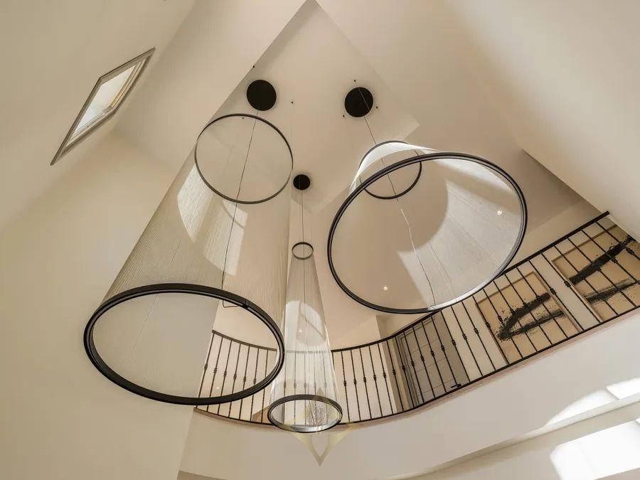 Occupying a generous plot of 3,580 m², the villa offers 1,213 m² of internal space, thoughtfully arranged across six spacious en-suite bedrooms and eight bathrooms. The interiors are bathed in natural light and designed with a timeless elegance—featuring high ceilings, custom finishes, and warm, modern tones.