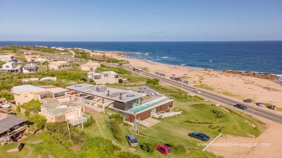 One Of The Most Sophisticated Oceanfront Houses In Manantiales 7 Beds | 9 Baths | 772 Sqm | 1,144 Sqm lot Manantiales, Maldonado Department, Uruguay PRICE: $5,300,000 Located on the seafront, just 1 km from Manantiales village, this modern, fully automated house is designed over three levels. All materials and equipment are of the highest quality. It features home automation in all rooms. The property has seven bedrooms and multiple social spaces. On the upper floor, there is the living room next to a sitting area, a large dining room with an integrated kitchen, a second independent kitchen, an enclosed barbecue area, and a large outdoor deck with a swimming pool and incredible views of the beach. It includes an elevator and two enclosed garages with capacity for four vehicles. This is an ideal option for summer or year-round living, as it is within walking distance of all the restaurants, shops, and beaches of Manantiales. All Italian appliances and furniture worth more than half a million dollars are included. ——— Team Haverkate Ruta 10, KM161, Esquina Las Brisas, 20001 La Barra, Departamento de Maldonado, Uruguay CONTACT TEAM * Bettina Waldraff Phone: + 59894299200 Email: bettina@realestate-in-uruguay.com