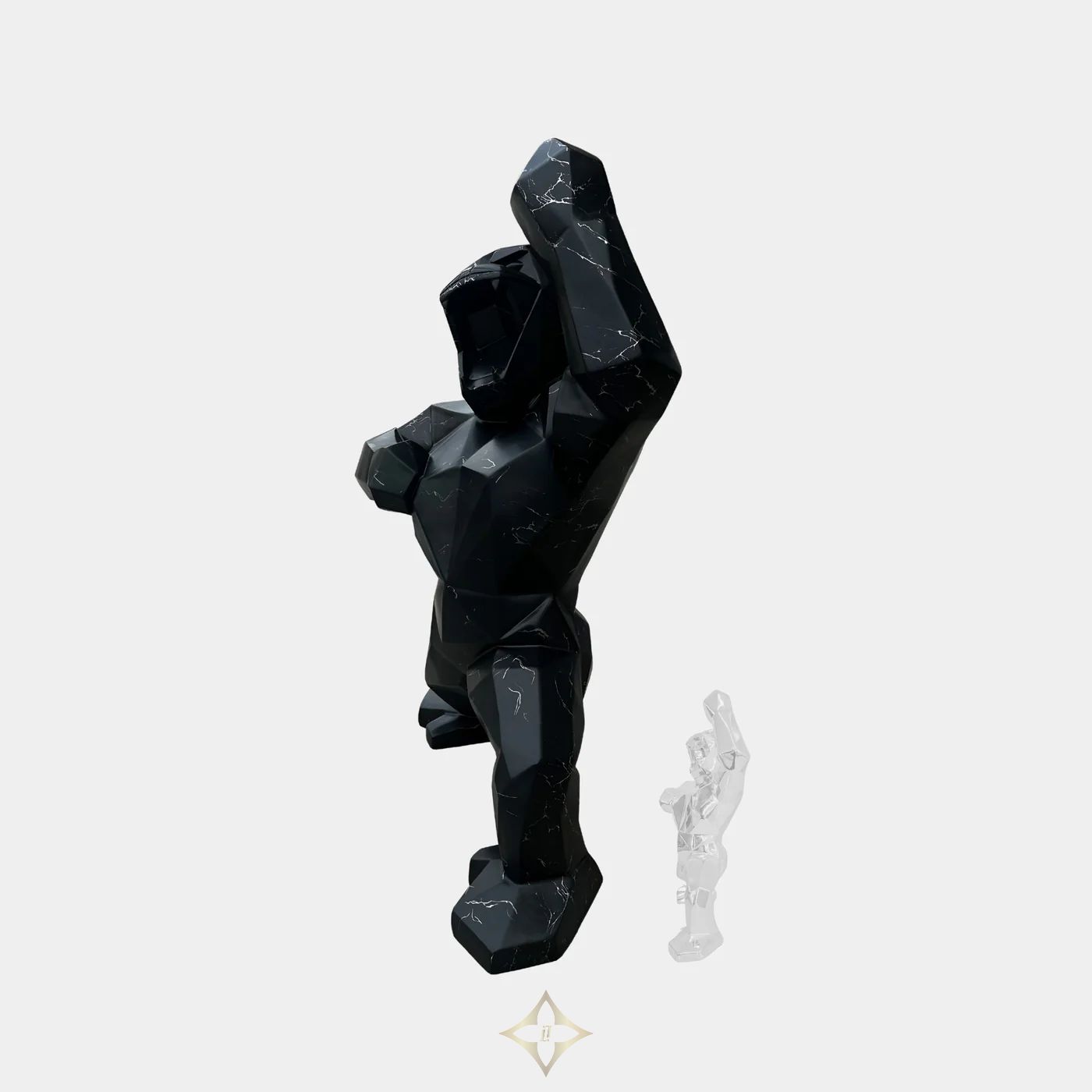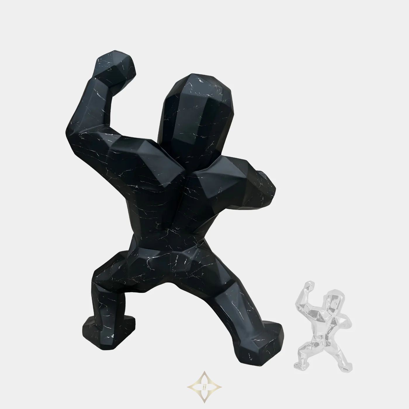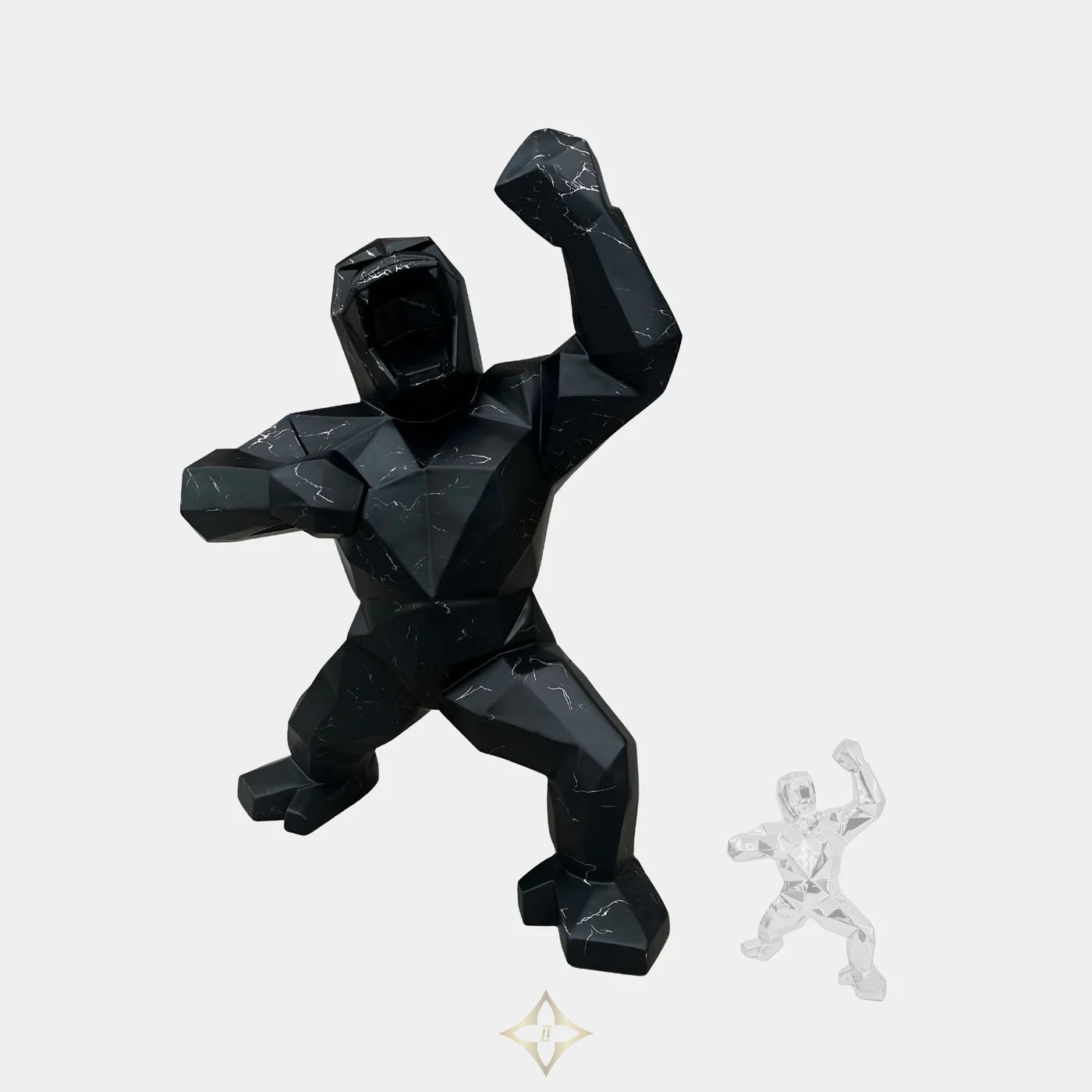 Original BLACK STONE GORILLA SCULPTURE - 165CM VND112.044.000 FREE Worldwide Delivery AVAILABLE Description Introducing an impressive work of art, the Black Stone Gorilla Sculpture in 165cm stands as a testament to exquisite craftsmanship and modern design. Meticulously crafted from high-quality resin, this sculpture is expertly hand-painted to emulate the rich texture and appearance of natural black stone. Standing at an imposing 165cm tall, it captures the majestic presence of a gorilla with lifelike details, from the expressive eyes to the powerful musculature. This piece brings a touch of the wild into your interior space, serving as a captivating focal point that exudes strength and sophistication. MAJESTIC GORILLA SCULPTURE FOR CONTEMPORARY INTERIORS This sculpture enhances any room with its commanding presence and artistic appeal. The hand-painted black stone finish complements a variety of interior styles, from modern minimalist to eclectic. Its substantial height and realistic features make it an ideal statement piece for living rooms, offices, or galleries. The durable resin construction ensures longevity, while the meticulous detailing reflects a refined appreciation for wildlife art. This sculpture not only enriches your décor but also creates a conversation starter that embodies elegance and artistic excellence. Specification Height 165cm Width 110cm Depth 110cm Weight 35KG Giant Sculptures VISIT Level 1, The Mailbox, 3 Wharfside Street, Birmingham B1 1RD, UK (BY APPOINTMENT ONLY) CALL * Phone: +44 (0)20 3330 9526 * WhatsApp: +44 7599 714405 EMAIL sales@giant-sculptures.co.uk