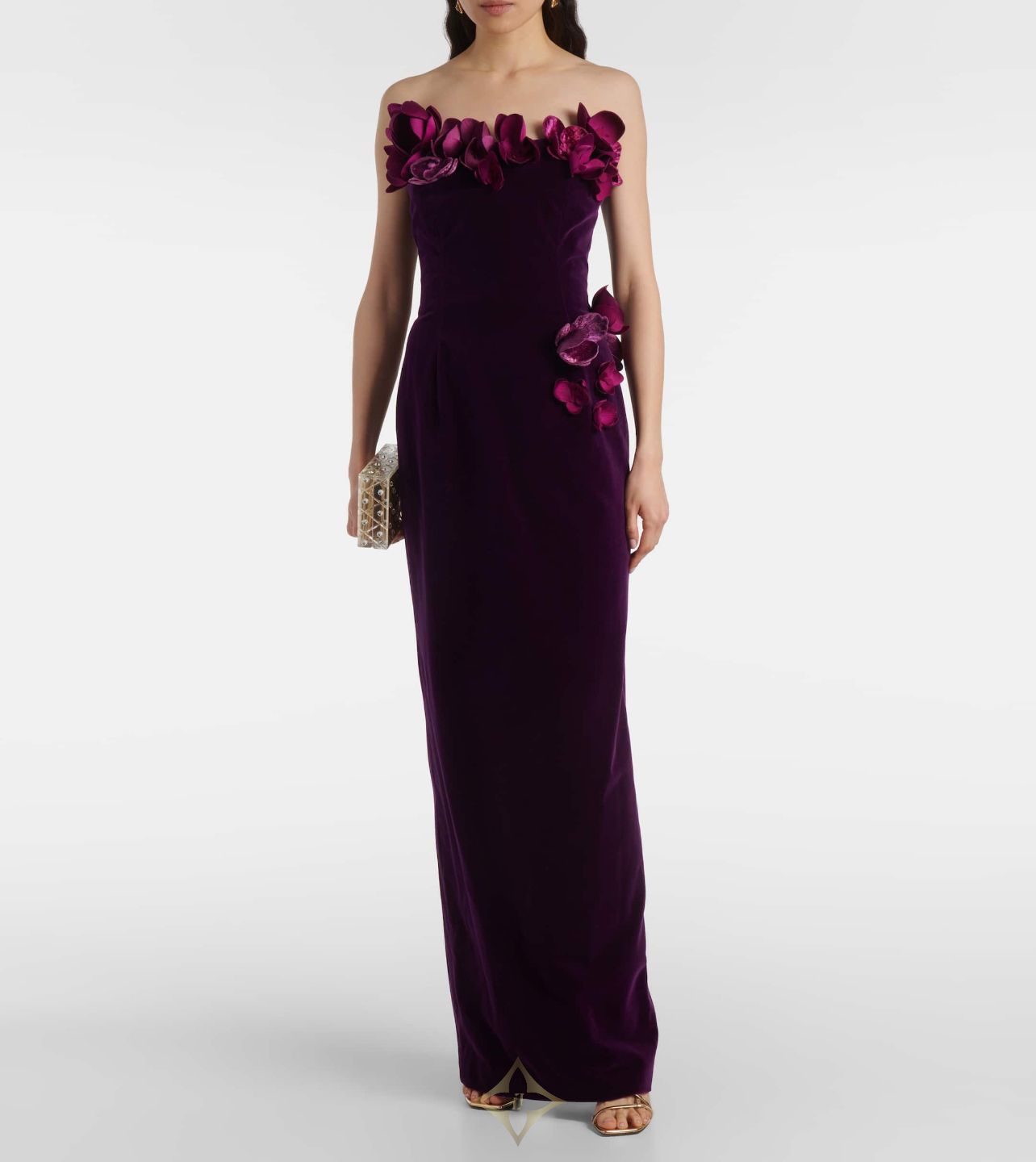 OSCAR DE LA RENTA Orchid embroidered velvet gown PRICE: € 7,700 (10% off over €500 with FIRST10) excl. duties, taxes, and shipping costs PRODUCT DETAILS Oscar de la Renta's strapless velvet evening gown exudes timeless elegance. Designed with a column silhouette and internal bustier for structure, this gown features cascading 3D orchid embroidery, creating a breathtakingly masterpiece. Material: 100% cotton Care instructions: spot clean Made in the USA Designer color name: Plum Closure: zipper fastening Lining: 100% silk Item number: P00995274 SIZE & FIT True to size Strapless Internal corset with underwire support Cinched waist Non-stretchy fabric slit length 66,0cm-26" The model seen in the picture is 178cm-5'10" and wearing a size US 4 ——— Mytheresa (Mytheresa International Services GmbH) Einsteinring 9, 85609 Aschheim⁄Munich, Germany Contact: Michael Kliger (Managing Director) Phone: +49 89 127695-0 Email: info@mytheresa.com 24/7 Support Phone: +49 89 127695100 Email: customercare@mytheresa.com Argentina: +548003452069 Chile: +56800914670 Colombia: +578005198535 Mexico: +525559854532 Peru: +5180150420 Puerto Rico: +17877094363