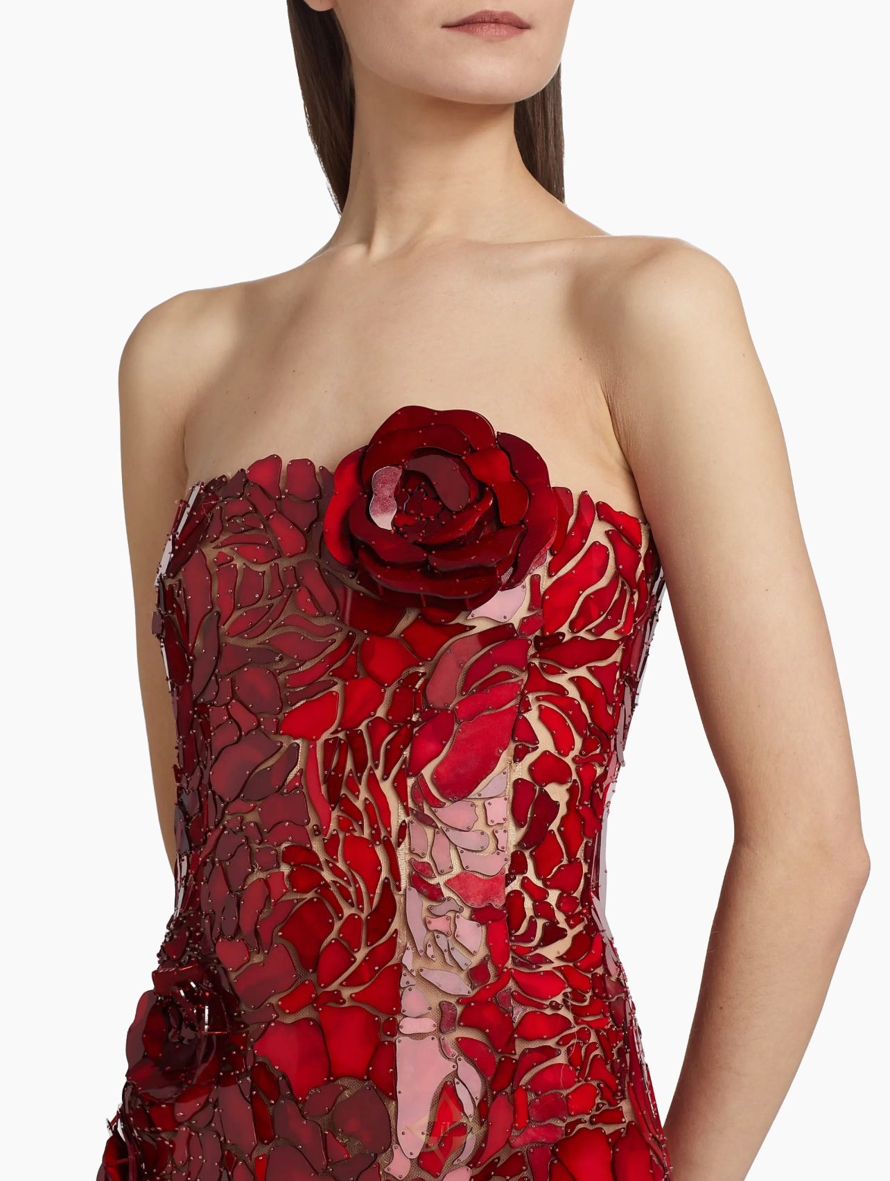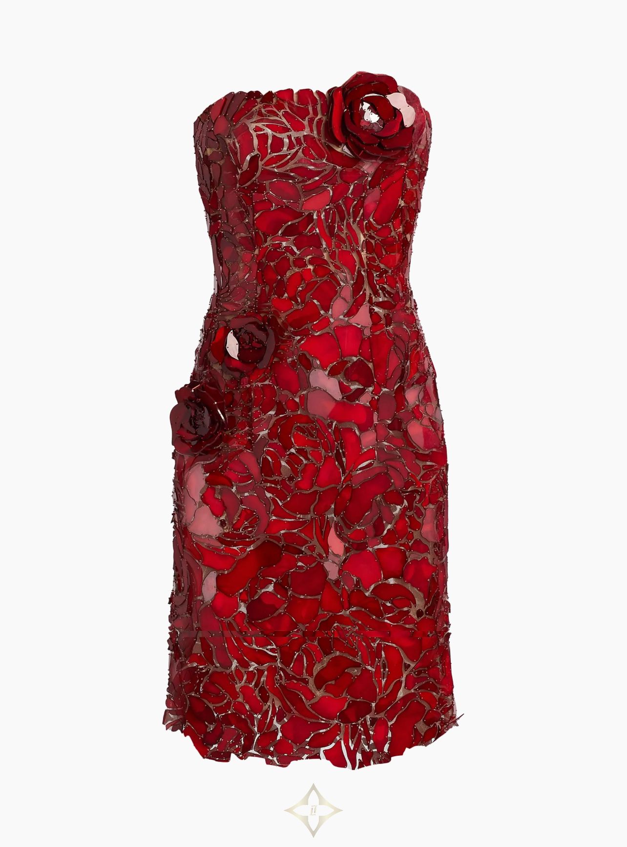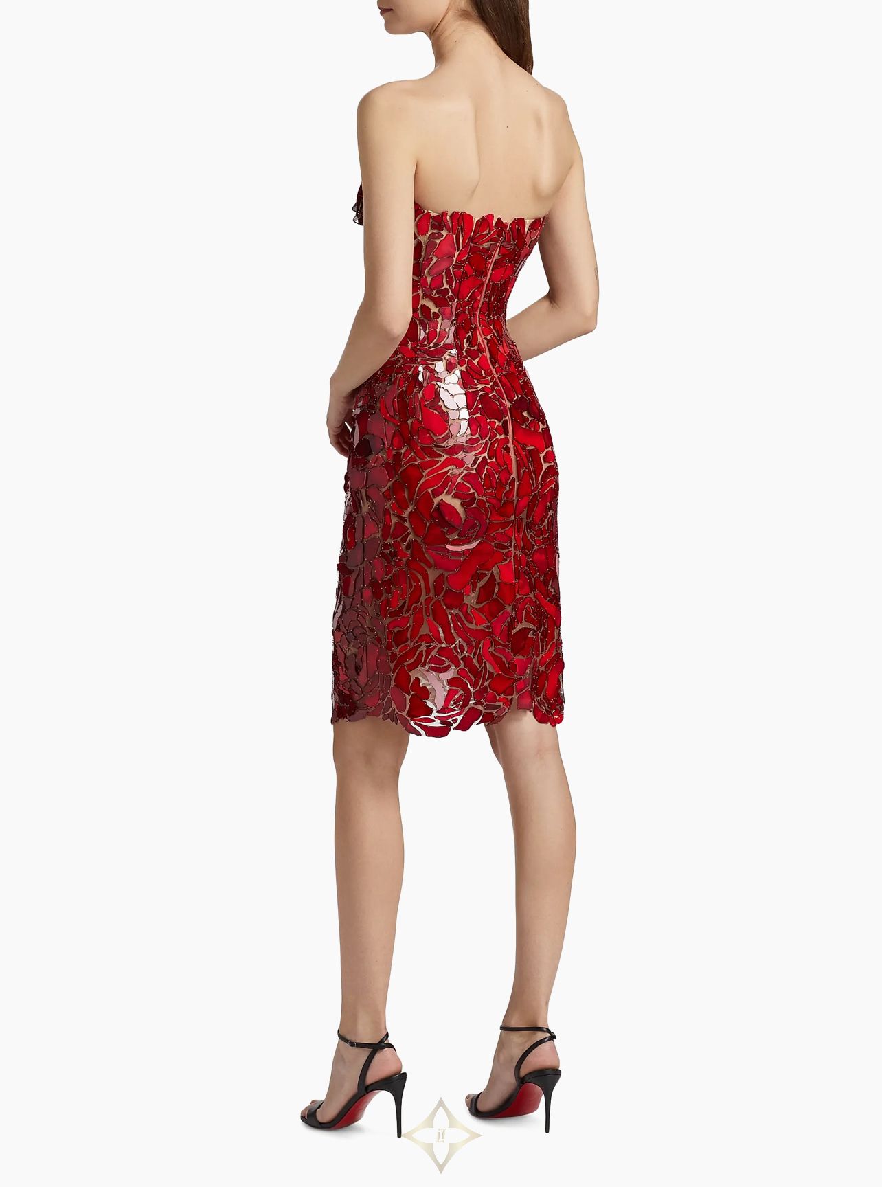 Strapless Mosaic Embroidered Tulle Cocktail Dress