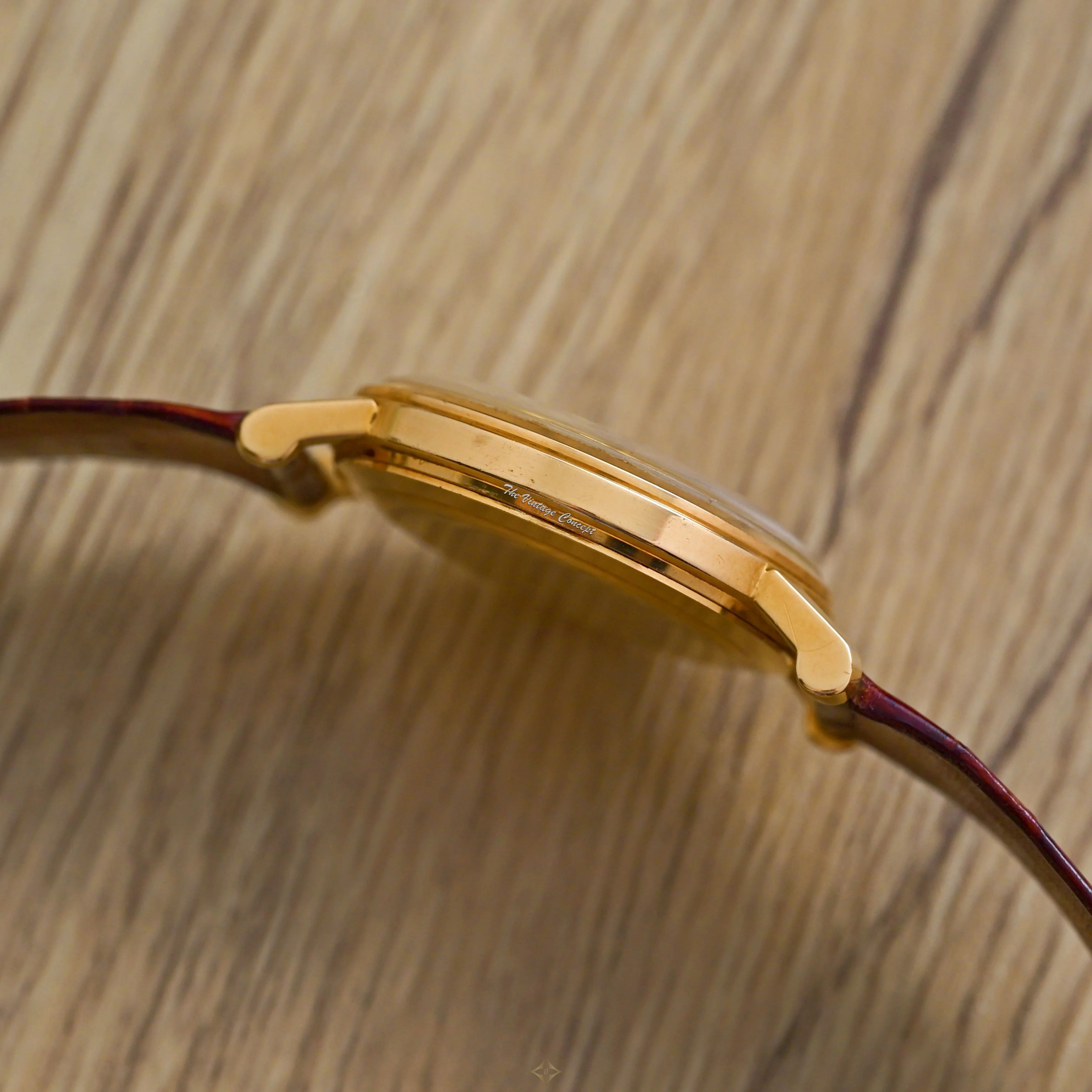 Dial: Excellent condition pure and simple gold dial with fine black lines dividing the dial into eight sections along with matching hands