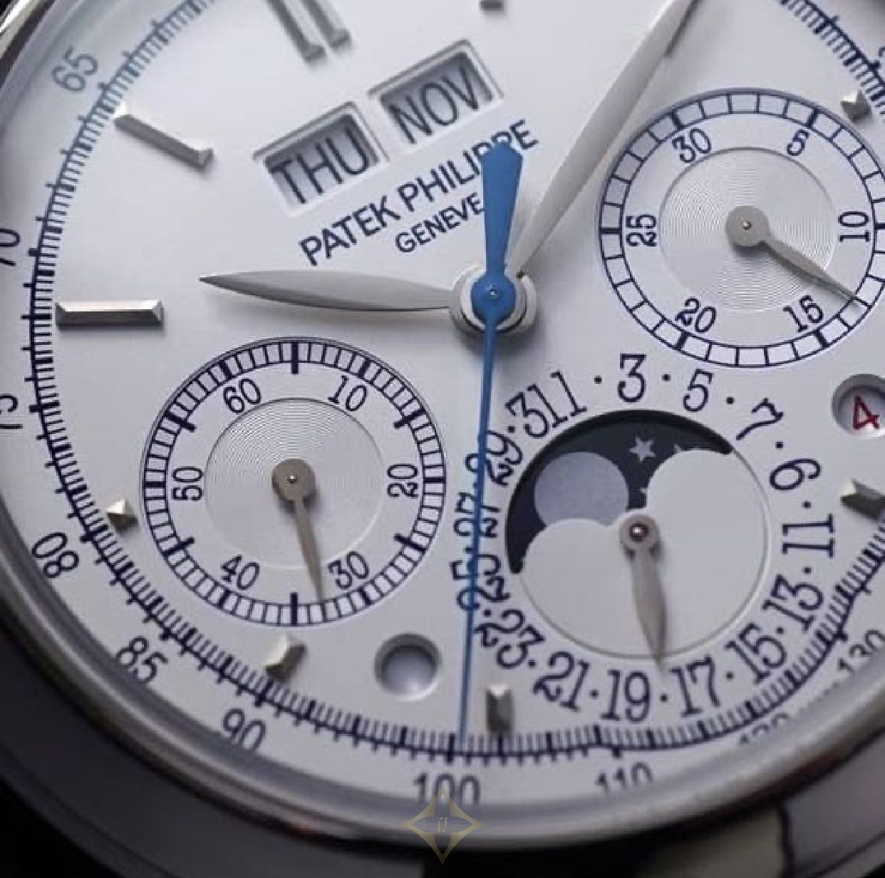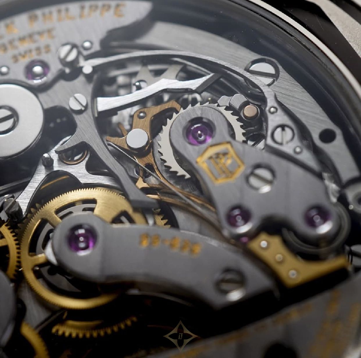 On the inside is the inhouse manual winding caliber CH 29‑535 PS Q powering the hours / minutes, chronograph, perpetual calendar and the day/night indicator. It is one of the best designed movements and finished to the highest standards featuring perlage on the baseplate, Geneva stripes and satin finished bridges, black polished screws and mirror polished anglage, all approved with the PP hallmark seal.