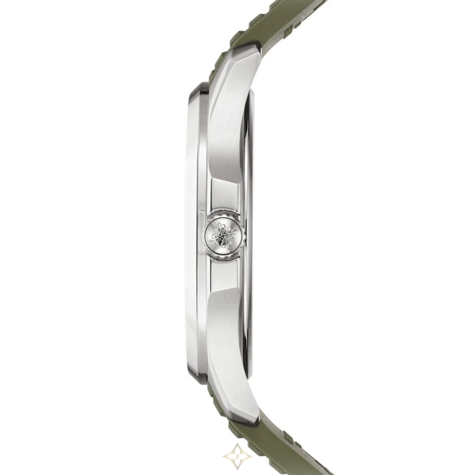 PATEK PHILIPPE Aquanaut Luce Quartz Steel Green Dial 38mm Reference Number 5267/200A-011 Price: US$ 59,003 Introducing the Patek Philippe Aquanaut Luce, a stunning reinterpretation of the iconic Aquanaut collection. Launched in 2021, this timepiece combines contemporary chic with Patek Philippe's renowned craftsmanship, perfect for the modern woman. The 38.8mm stainless steel case features a unique rounded octagonal design, adorned with a bezel set with 48 diamonds that adds a touch of luxury. The khaki green dial, embossed with the signature Aquanaut pattern, is complemented by luminescent Arabic numerals for easy readability. Powered by the Caliber E 23-250 S C quartz movement, the watch provides reliable timekeeping and includes a date aperture and sweep seconds. With a water resistance of 30 meters, this watch is suitable for everyday wear, whether at the office or during leisure activities. The integrated khaki green composite strap enhances comfort and style, secured by a patented fold-over clasp with four independent catches. Elevate your accessory collection with the Patek Philippe Aquanaut Luce, where elegance meets functionality in a bold new hue. Specifications OVERVIEW Year Launched: 2021 CASE Size (mm): 38 Bezel Material: Stainless Steel Crystal: Sapphire Dial Color: Green Dial Numbers: Arabic Numerals, Luminescent Material: Stainless Steel BRACELET / STRAP Strap Color: Green Strap Material: Rubber Strap Clasp: Deployment Clasp Strap Clasp Material: Stainless Steel MOVEMENT Base Caliber: Calibre E23‑250 S C Movement: Quartz OTHER Water Resistance: 100m Number of Jewels: 8 Functions: Hours, Minutes, Seconds, Date Wristcheck Wristcheck Exchange Limited Phone: +852 2318 1777 WhatsApp: ‪+853 6803 1718‬ Email: info@wristcheck.com Hong Kong Private Showroom 25/F, Canton House, 56 Queen’s Road Central, Central, Hong Kong MACAU CONCEPT STORE @ WYNN MACAU Shop 41, Wynn Macau, Rua Cidade de Sintra, NAPE, Macau