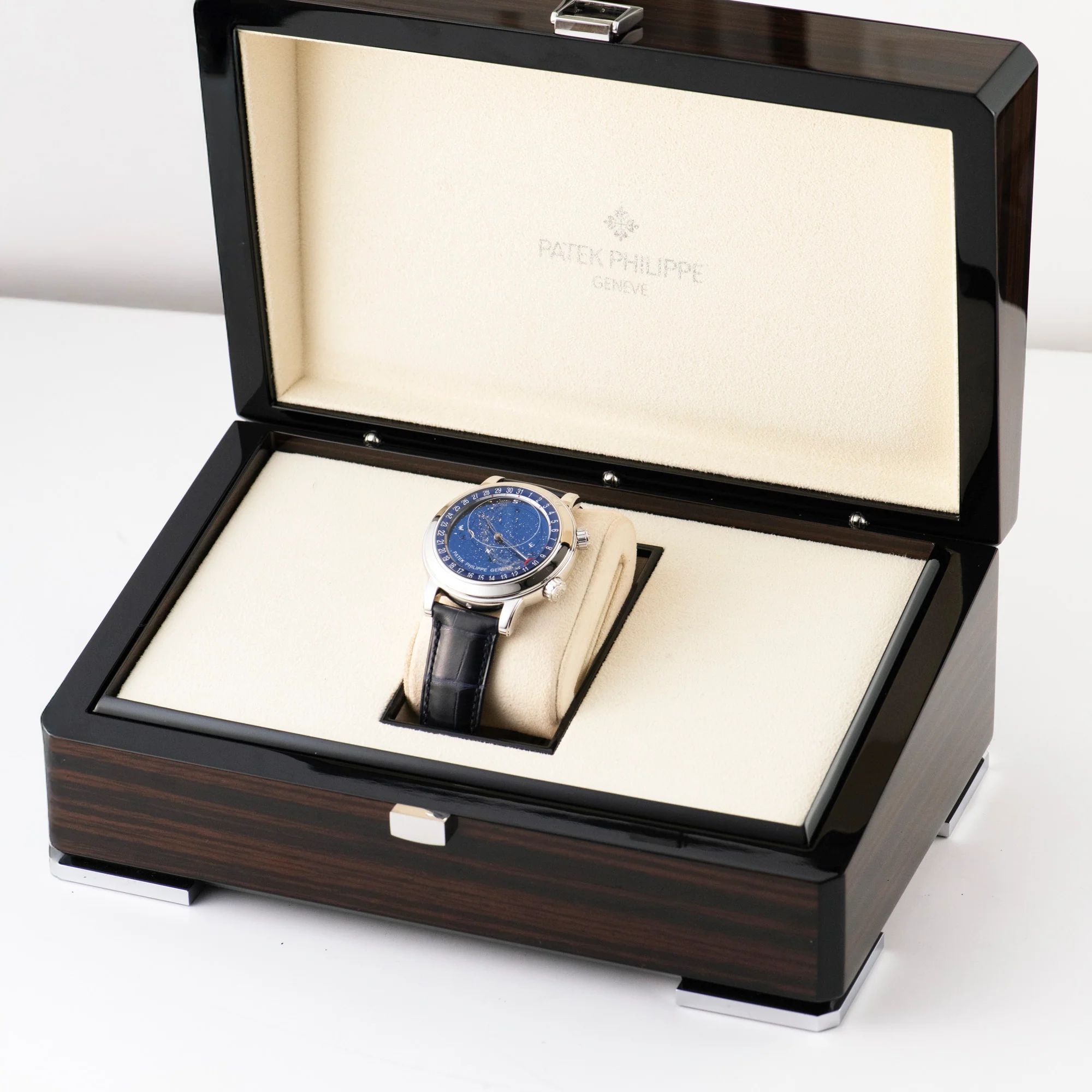 Our 6102P is presented in unworn condition and comes as a full set, complete with 2026 dated paperwork, full book pack, and its original Patek Philippe wooden box.