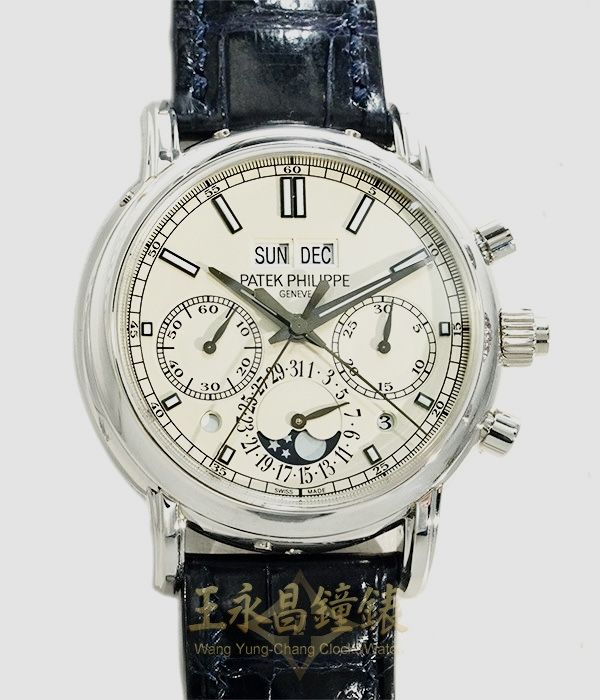 PATEK PHILIPPE 百達翡麗 PRICE: NT$ 7,980,000 DESCRIPTION Series: Grand Complications Style: Supercomplication timepiece, men's Model: 5204P-001 Movement: Cal.29-535 PS Q, Manual winding Material: PT950 Pure white gold (platinum) Size: 40 mm Water resistance: 30M Conditions: Like new Box: Yes, rotating box Warranty: Yes (2013) Accessories: Bottom cover, pressure bar, rotating box Reference price: NT$ 9,310,000 (2019/02/01) ——— Wang Yung-Chang Clock&Watch (王永昌鐘錶行) No. 300, Songlong Rd., Xinyi Dist., Taipei City 110, Taiwan TEL:+886-2-27530311 E-Mail:watchart@watchart.com