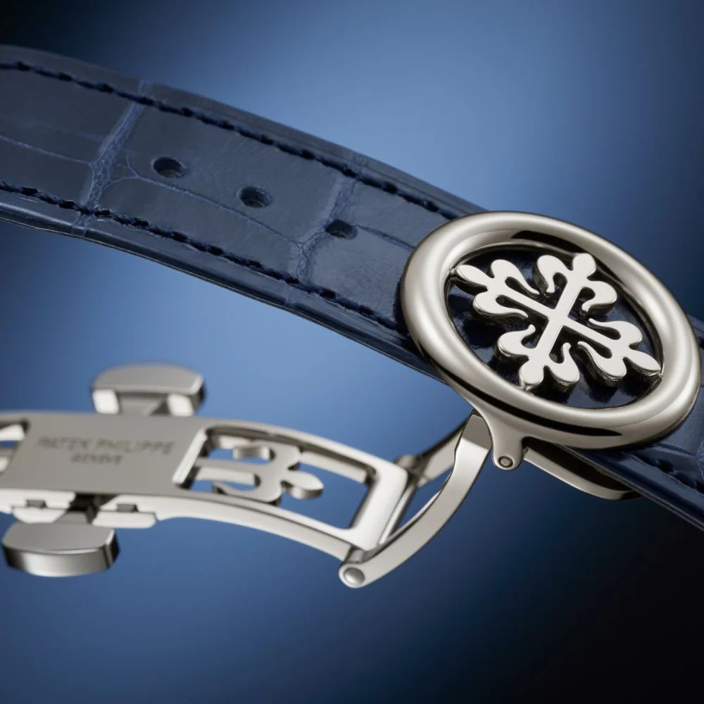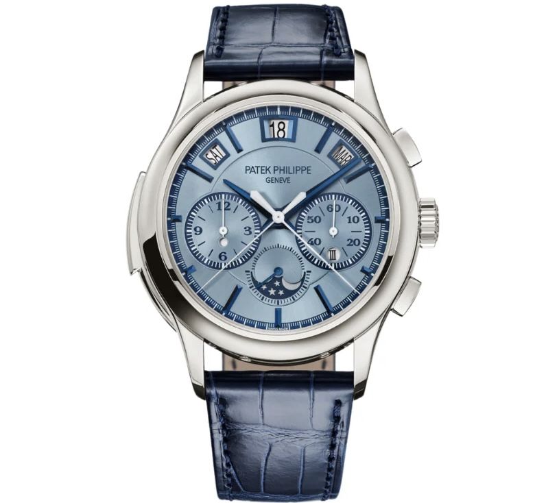 The Patek Philippe Grand Complications Ref. 5308G-001 is a masterpiece of haute horlogerie, uniting exceptional craftsmanship with sophisticated functionality. Encased in 42mm of elegant white gold, this timepiece features a sunburst ice blue dial that radiates brilliance and contrasts exquisitely with its shiny navy alligator leather strap.