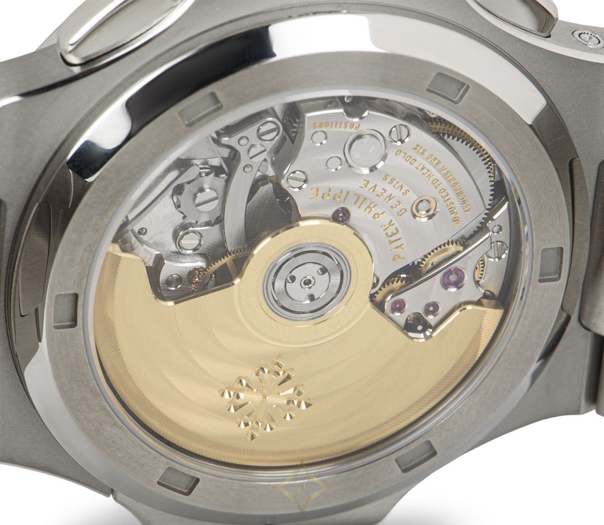 The bracelet is equipped with a concealed Nautilus fold-over clasp. Fitted with sapphire crystal and a self-winding automatic chronograph movement perfectly showcased by the transparent case back.