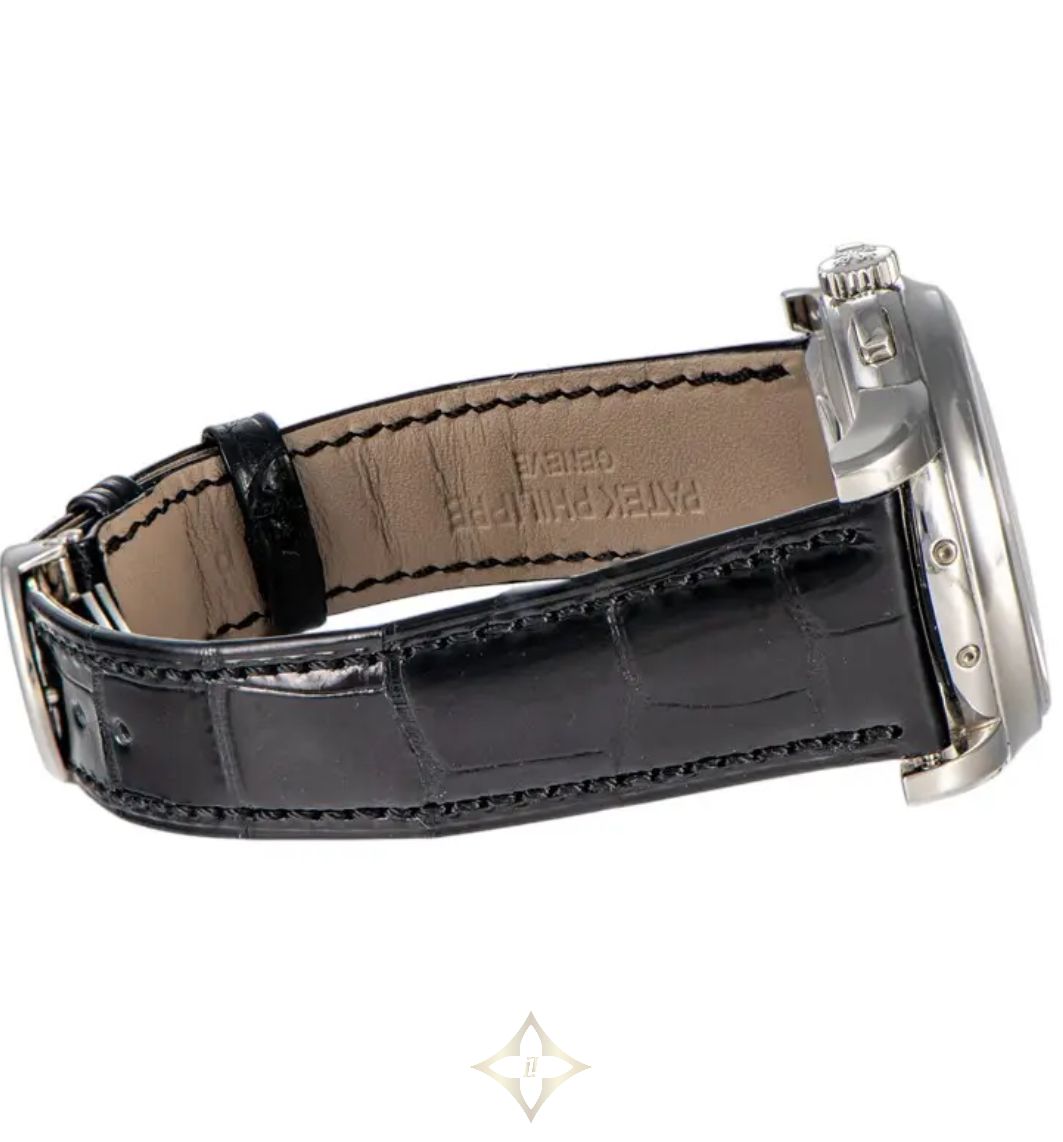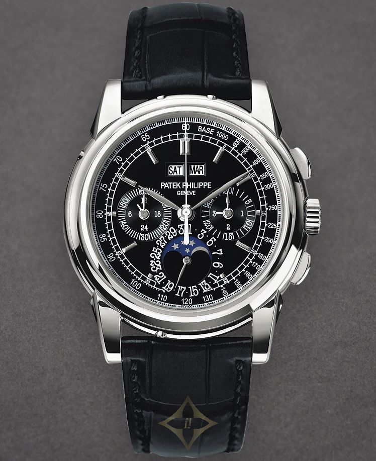 Patek Philippe Perpetual Calendar Chronograph PRICE: 2 650 000 kr Patek Philippe Ref 5970P-001 Platina 2009 SPECIFICATION Ref 5970P-001 Case: Platinum Year: 2009 Movement: Manual Condition: Used Glass: Sapphire Watch Size: 40 mm Strap Leather Dial: Black Strap Color: Black Box: Yes Buckle: Folding Clasp Certificate: Extract Water Resistant to 25 m ——— LUXURY WATCHES Grev Turegatan 12, 114 46 Stockholm, Sweden Phone: +46 (0) 8 612 10 88 Email: info@luxurywatches.se