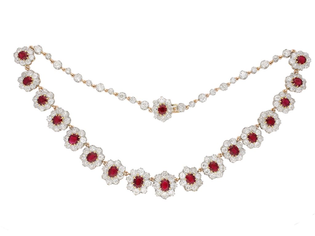 Pigeon's Blood Burmese Ruby & Diamond Necklace/Tiara, Circa 1915 | London 🇬🇧