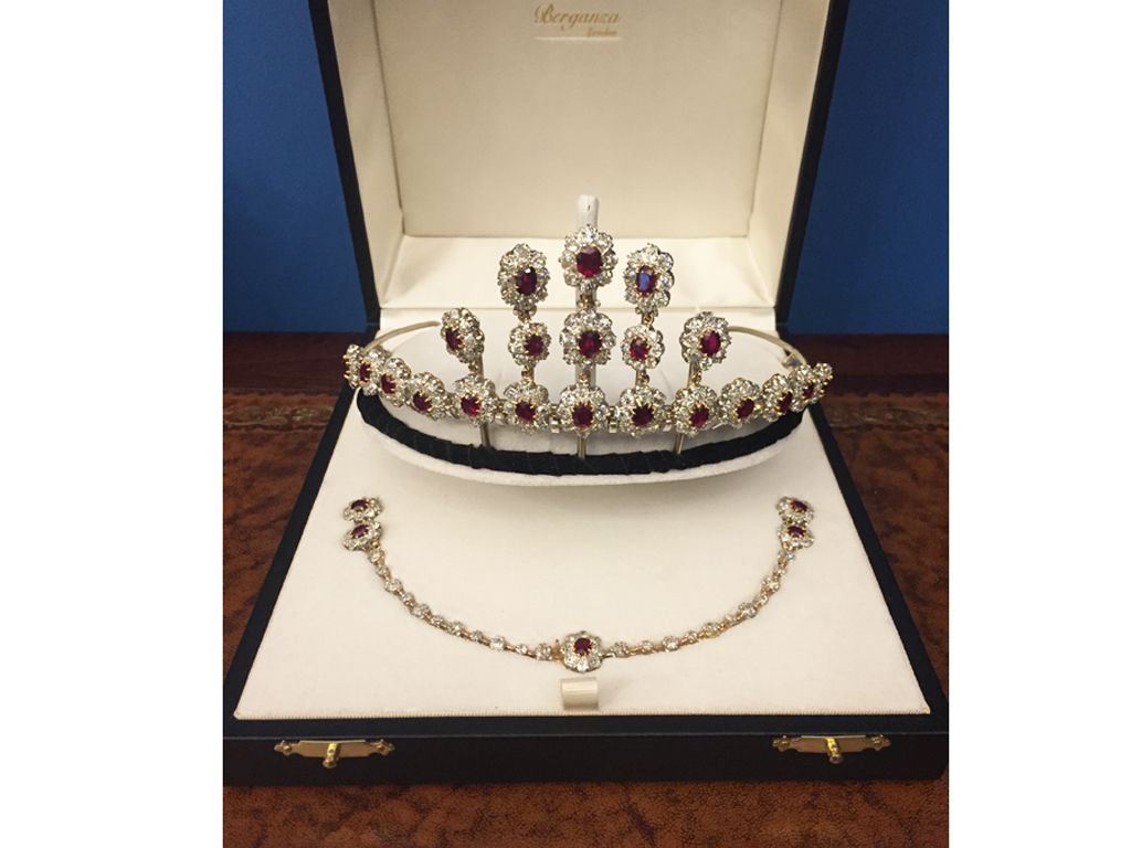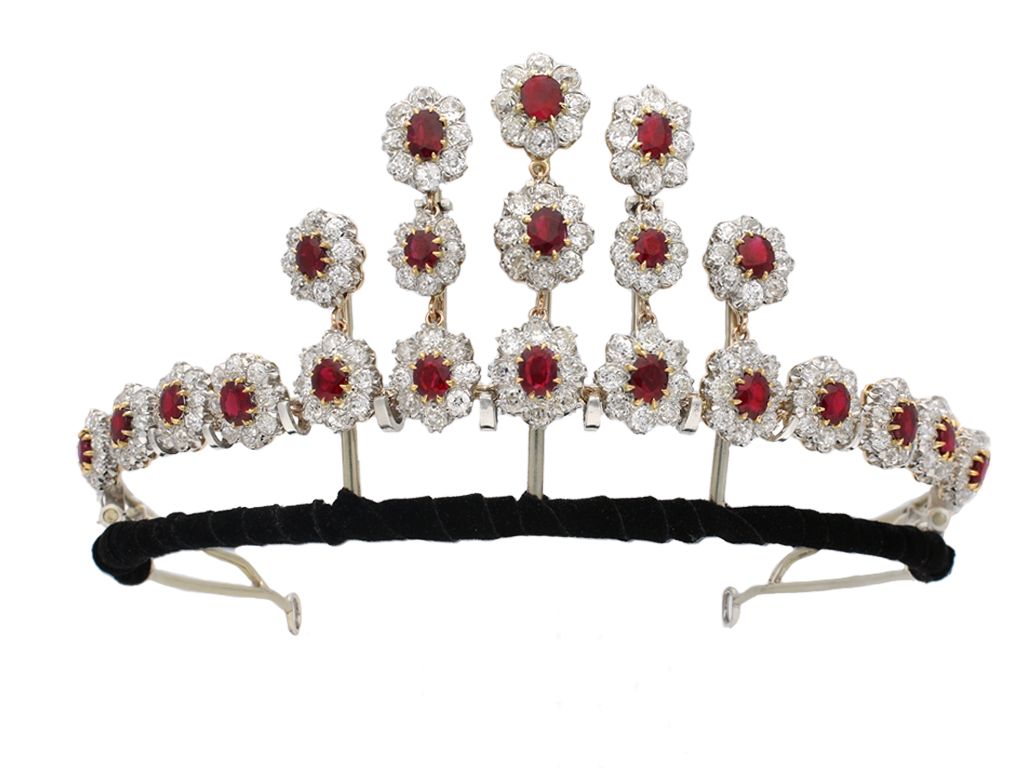 Pigeon's blood Burmese ruby and diamond necklace/tiara, circa 1915.