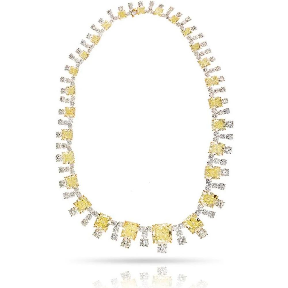 Platinum & 18K Yellow Gold Necklace with GIA-Certified Fancy Yellow Diamonds - 94.65 Carat Total Weight | FL 🇺🇸