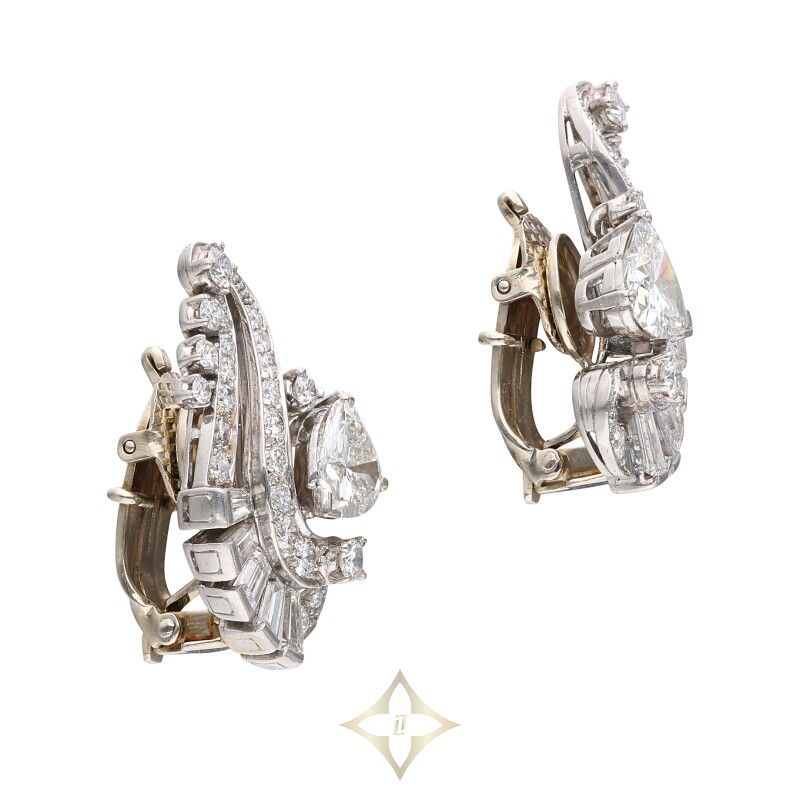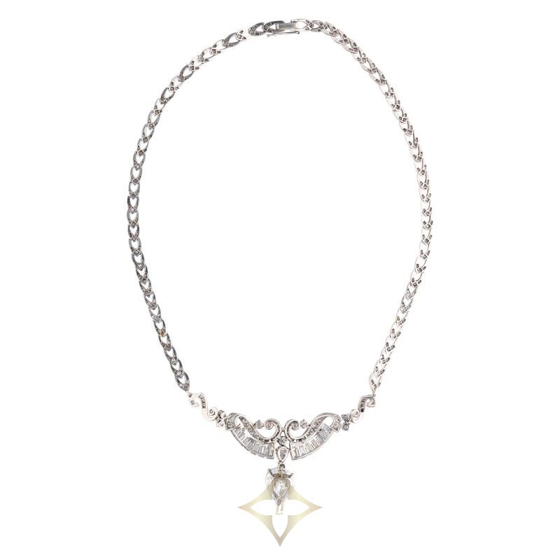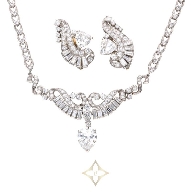 Platinum, White Gold and Diamond Earclip and Necklace Set