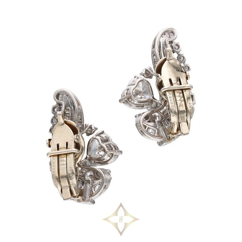 Featuring heart-shaped diamonds, accented by round brilliant, single, baguette and pear-shaped diamonds.