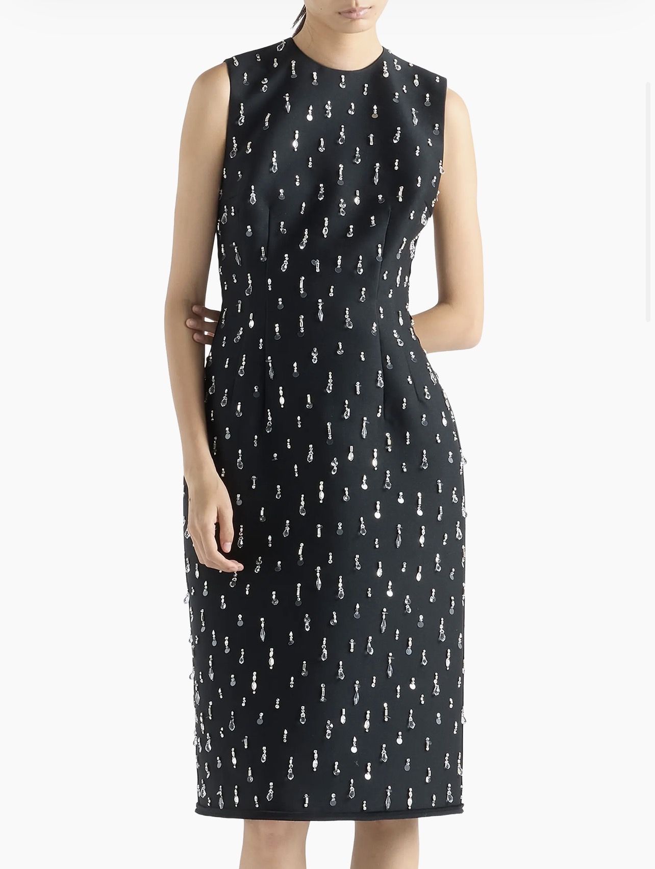 Prada Embroidered Scuba Dress PRICE: $12,500 SIZE: 38 (2) | 40 (4) | 42 (6) Details Sheath silhouette Lined garment Round neckline Center-back zipper closure Straight hem Imported 77% polyester, 23% silk - 15% plastic polyester, 70% glass, 15% brass Style Code: 0400026104252 ——— Saks Fifth Avenue (Saks & Company LLC) Marc Metrick (CEO) Address: 225 Liberty St FL 31 New York, NY, 10281-1089 United States Customer Service Hotline: +1.877.551.7257 (Sales Associate) Media: sakspress@saks.com STORES LOCATOR: SAKS NYC 611 Fifth Avenue, New York, NY 10022 CONTACT Phone: +1 212-753-4000 Email: conciergenyc@s5a.com SAKS BEVERLY HILLS 9570 Wilshire Boulevard, Beverly Hills, CA 90212 CONTACT Phone: +1 (310) 275-4211 Email: conciergebeverlyhills@s5a.com