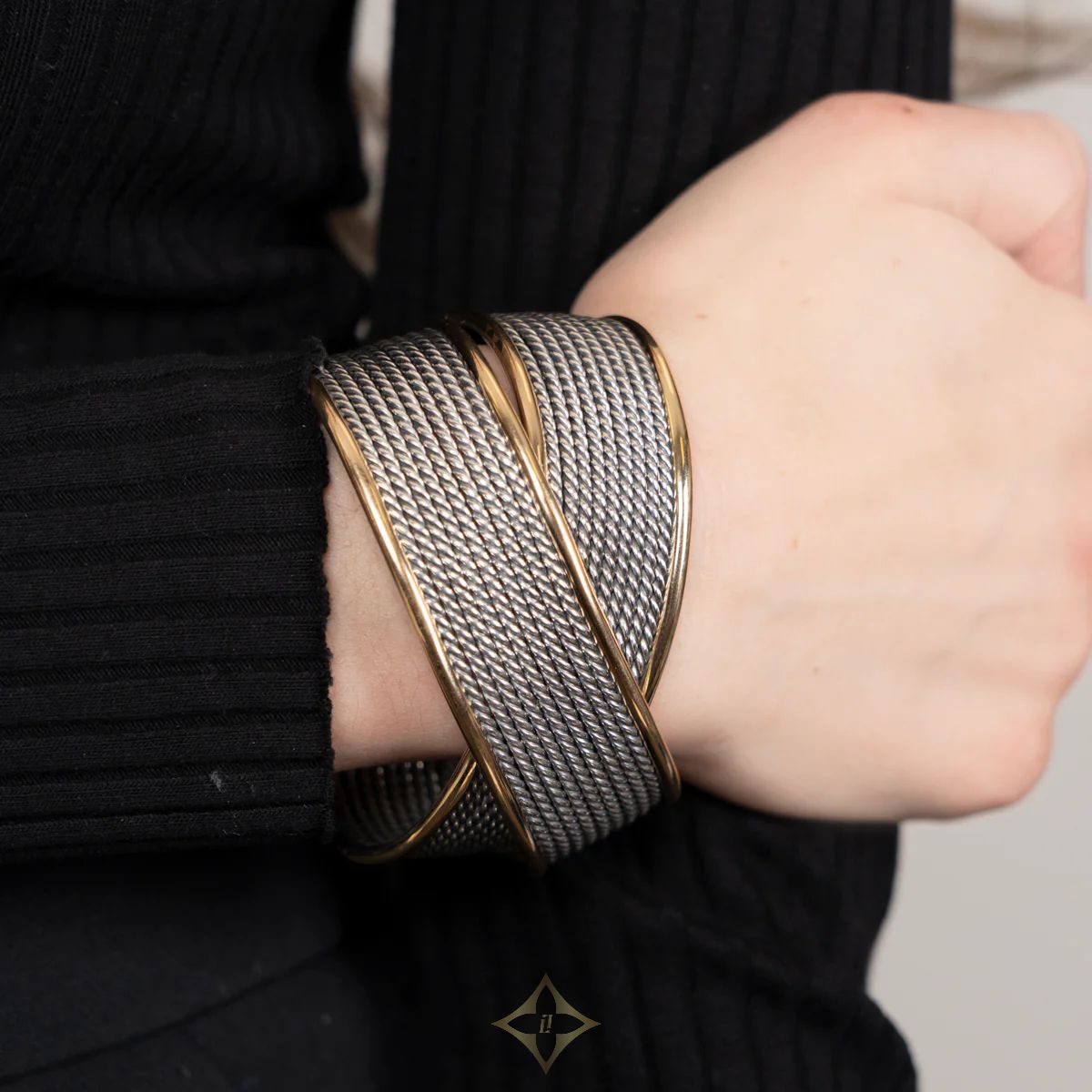 PRE-OWNED DAVID YURMAN TWO-TONE ORIGAMI CROSSOVER CUFF | OH 🇺🇸