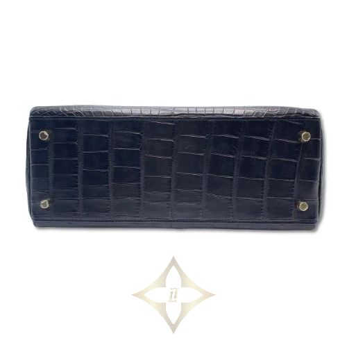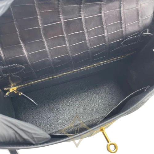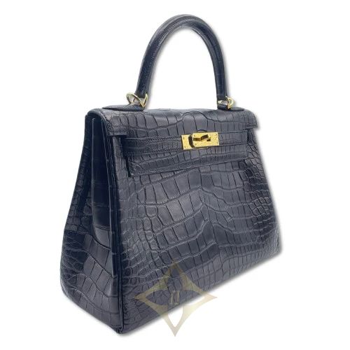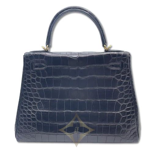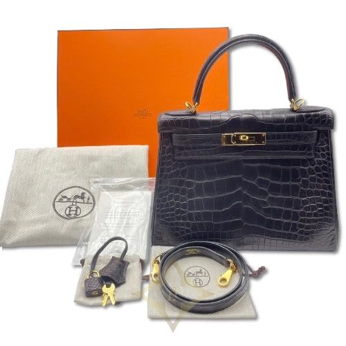 Pre-Owned Hermes Kelly 28 Noir Alligator Mat Gold Hardware D Engraved | Tokyo 🇯🇵