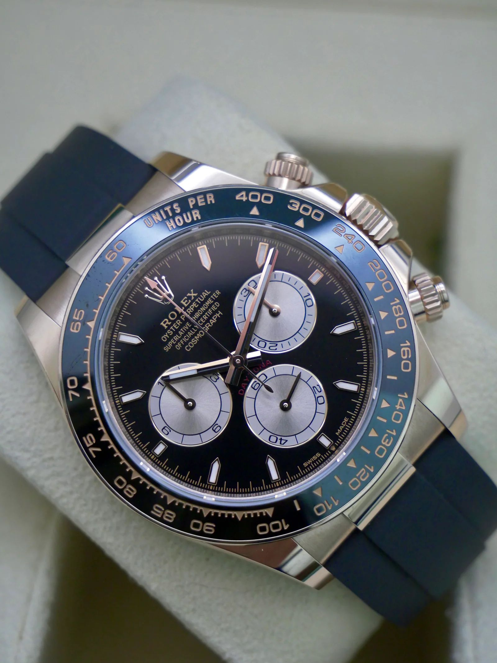 Rolex Daytona PRICE: €42.900,00 EUR Rolex Daytona Ref. 126515LN • 40mm • Sapphire • Caliber 4131 • From 2025 • With box and documents • Condition: New • 1 year warranty of our store on the mechanism ——— Eon Watches Pedro Nunes Street 26, 1050-172 Lisbon, Portugal Phone: +351 912195494 WhatsApp: +351 912 195 494 Email: Eonwatchespt@gmail.com