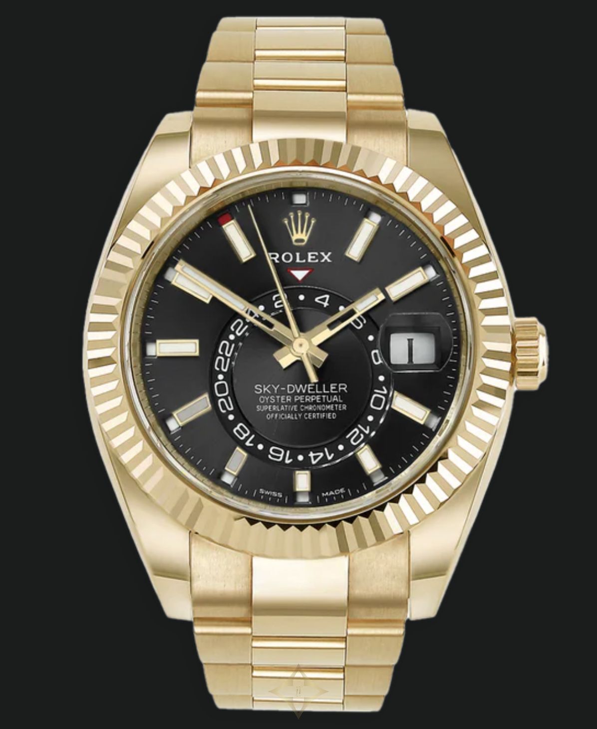 Pre-Owned Rolex Sky-Dweller 326938-0004 SKU: 19859 PRICE: $44,000.00 DETAILS This Pre-owned Rolex Sky-Dweller 326938-0004 is a sophisticated and luxurious timepiece, renowned for its complexity and elegance. Crafted from 18k yellow gold, this model features a 42 mm case and a striking black dial. The Sky-Dweller is equipped with an annual calendar and a dual time zone function, making it one of Rolex's most complicated watches. The annual calendar displays the date and month through apertures by the hour markers, while the second time zone is indicated by an off-center disc on the dial. This watch is powered by the automatic Caliber 9001 movement. The fluted bezel, a signature of Rolex, adds to its distinctive appearance. The Sky-Dweller is also water-resistant up to 100 meters (330 feet), making it both a practical and stylish choice for any occasion. This timepiece includes original box and card dated 2022 ——— De Boulle Diamond & Jewelry Locations * 6821 Preston Rd., Dallas, TX 75205, United States