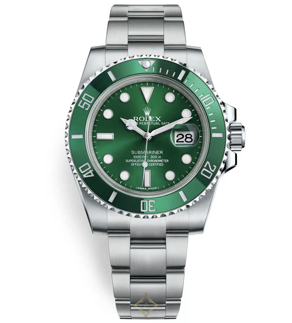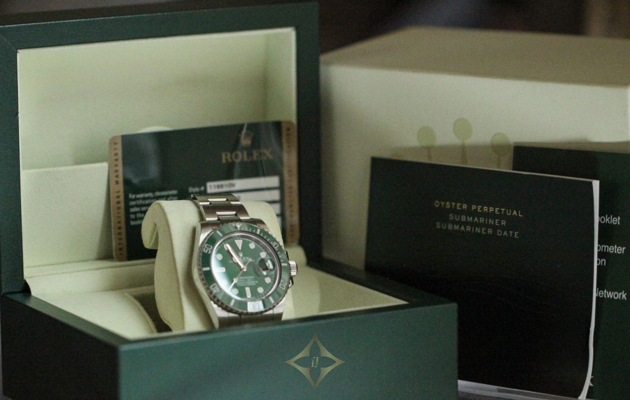 Pre-owned Rolex Submariner 40mm Green Ceramic Green Bezel For 116610LV Hulk Mint Complete Rolex Price: $ 23,000.00 DESCRIPTION This Rolex Submariner 116610LV is a high-end mechanical wristwatch that boasts impressive technical features and exceptional craftsmanship. Its 40mm Oystersteel case is equipped with a Triplock winding crown and a helium escape valve, allowing it to withstand pressures of up to 300 meters (1,000 feet) underwater. The unidirectional rotatable green ceramic bezel features a 60-minute graduated scale for accurate diving time measurement. Inside the case, the watch is powered by a self-winding mechanical movement entirely developed and manufactured by Rolex. The Calibre 3135 movement is a certified Swiss chronometer, which guarantees the watch's precision and reliability. It features a Parachrom hairspring and a large balance wheel with variable inertia for improved accuracy and shock resistance. The movement also provides a power reserve of approximately 48 hours. This particular Submariner 116610LV is in mint condition, with no visible signs of wear or scratches. It comes complete with the original box, papers, and tags, attesting to its authenticity and provenance. The stainless steel Oyster bracelet with a Glidelock extension system is also in excellent condition, providing a comfortable and secure fit on the wrist. Overall, this Rolex Submariner 116610LV is a top-of-the-line diving watch that combines advanced technical features with elegant aesthetics. It is a highly sought-after timepiece among collectors and enthusiasts alike, and this mint condition example is a rare find. If you're looking for a watch that can handle the most demanding underwater conditions while still looking stylish on land, this Submariner 116610LV is the perfect choice. Legend of Time, Inc. Legend of Time Boutique 5 S Wabash Ave 7 Floor #708, Chicago, IL 60603 United States, Illinois Phone: +1 312-609-0003 Email: info@legendoftime.com