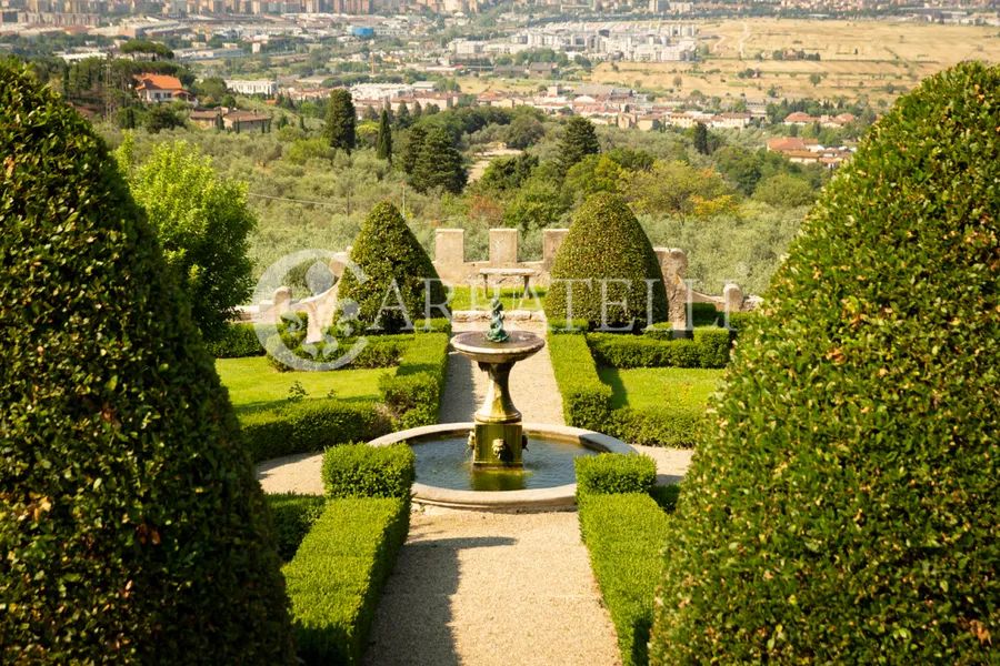 The Medici villa is immersed in its 1-hectare grounds with 8000 square meters of olive grove and 2000 square meters of splendid terraced Italian garden embellished with fountains, statues, flowering shrubs and terracotta decorations in addition to an ancient burrow carved from stone. The facades are characterized by an imposing columned loggia and panoramic terraces overlooking the majestic garden with enchanting views of Florence. Finally, a typical lemon house housing more than 30 lemon trees and a convenient covered garage.