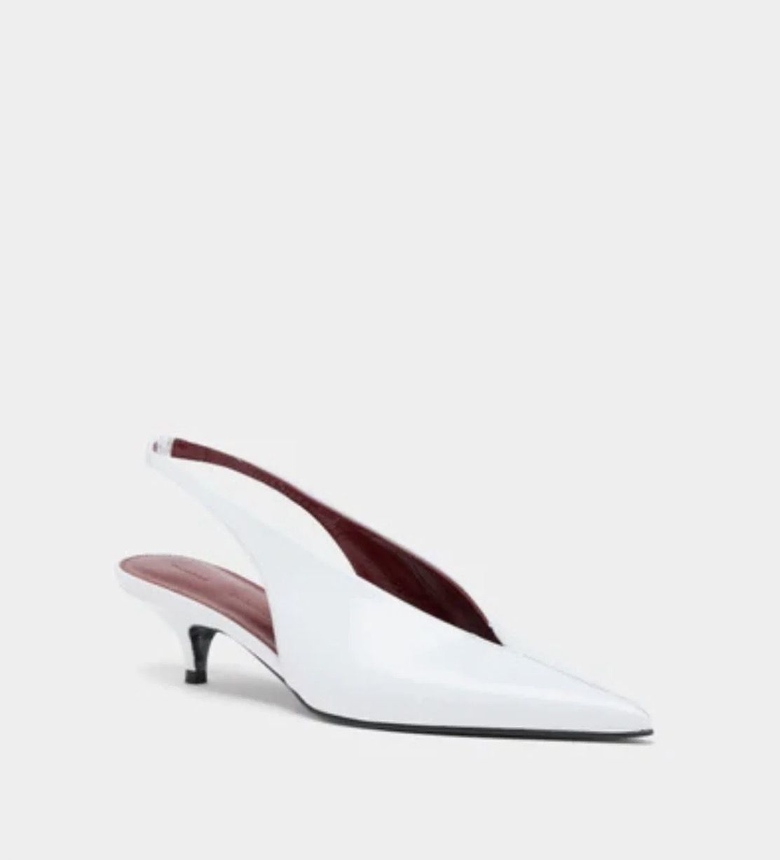 Crafted in polished calf and featuring a plush padded burgundy insole, Proenza Schouler's new 'Slash' slingbacks feature a chic elongated V-cut and effortless kitten heel. A small seam detail runs down the centre front, while an elasticated slingback strap ensures a secure fit. Finished with a pointed toe, these made-in-Italy heels are a comfortable, versatile go-with-everything option no matter the season.