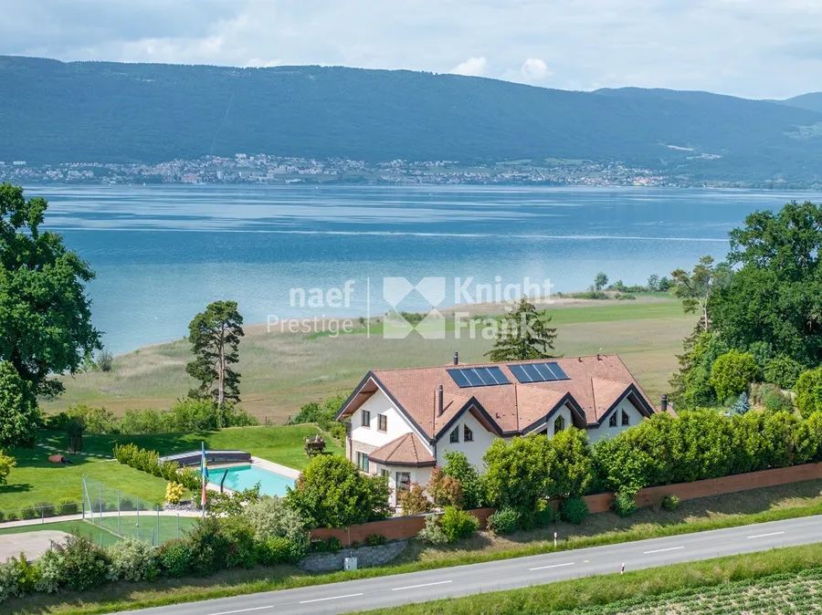 Located in a privileged environment, this sumptuous master property offers a breathtaking view of Lake Neuchâtel and the reliefs of the Jura, nearly 600 m² of living space combining elegance, impressive volumes and services of very high standing.