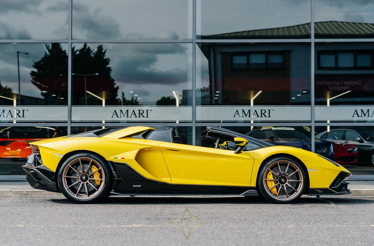 Amari Supercars is delighted to offer this exceptional 2022 Lamborghini Aventador LP 780-4 Ultimae Roadster, registered in April 2022. This stunning supercar is finished in the vibrant Giallo Spica, with an interior adorned in Nero Alcantara, complemented by Bronzo and Giallo Taurus contrasts.