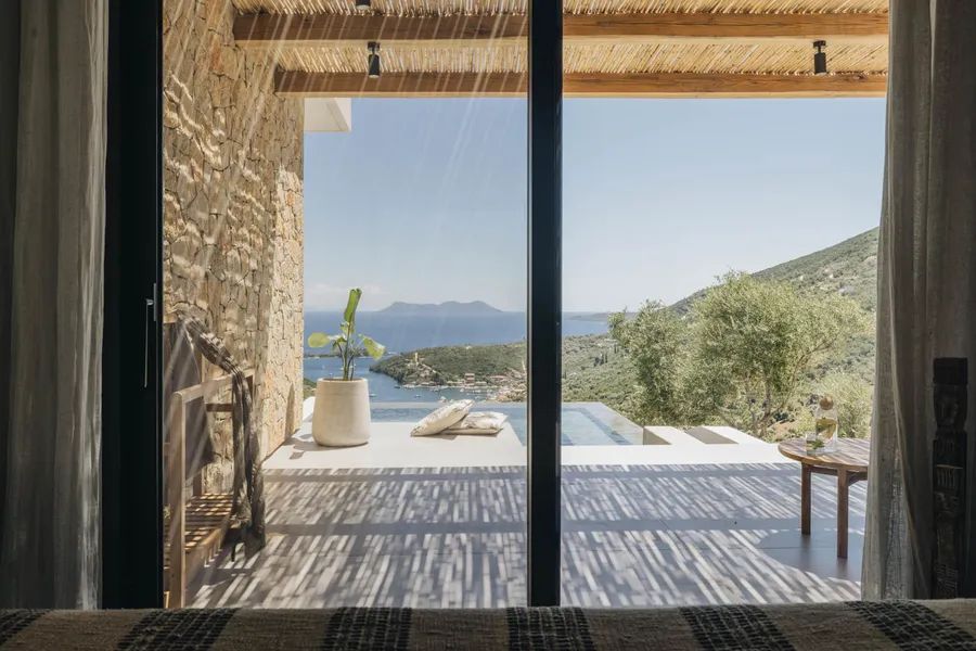 This single-level villa captivates from the moment you enter through a grand wooden beamed pergola, creating a captivating entrance. The master bedroom treats its occupants to breathtaking, unrivaled views of the picturesque Sivota Bay. This spacious retreat features a generously sized en-suite bathroom and a walk-in wardrobe. Adjoining the master bedroom is a beautifully designed shaded lounging area and a private pool.