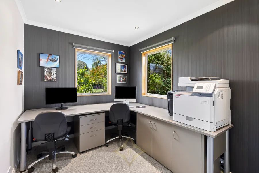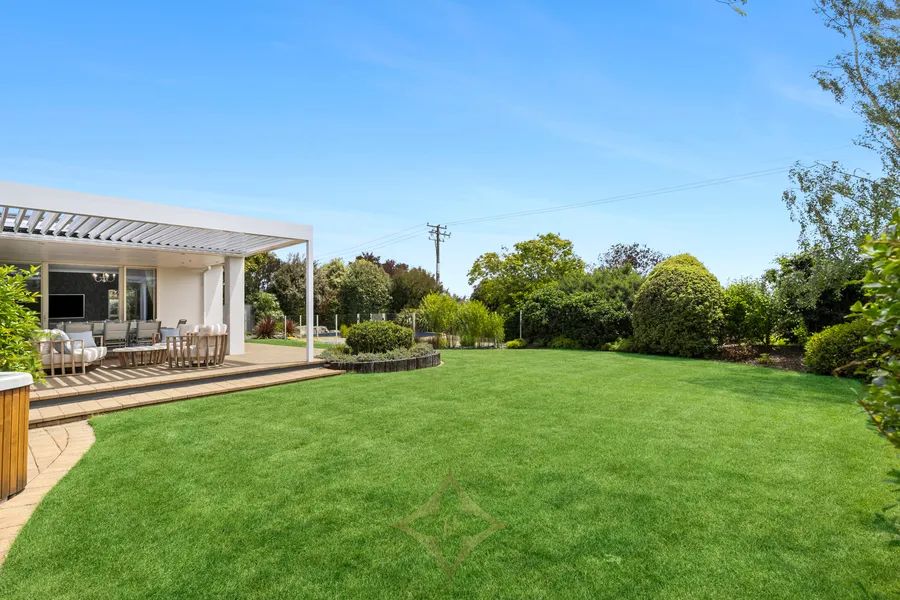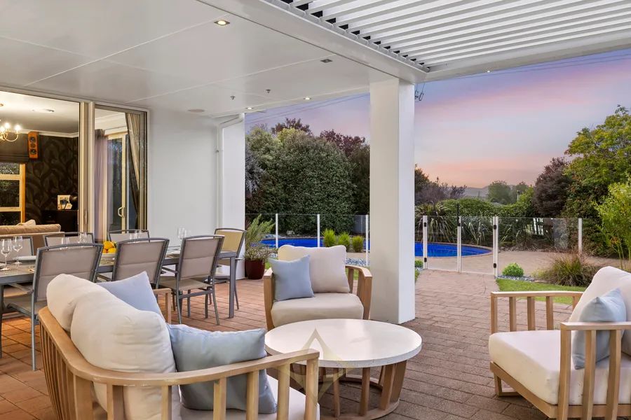 Outdoors, a solar-heated pool and a covered area with retractable louvers create the ultimate entertaining hub. The home also offers 3-car garaging, including one with a higher stud for a boat, and ample off-street parking for up to 5 vehicles.