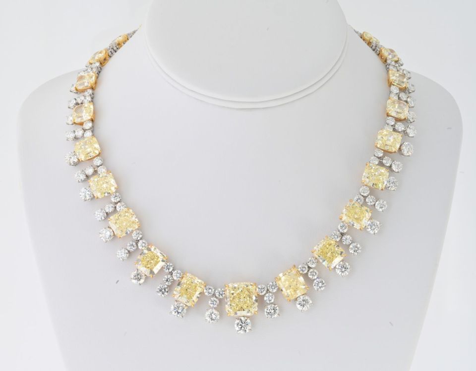 Fancycolor Platinum & 18K Yellow Gold Fancy Yellow Diamonds 94.65 carats Necklace