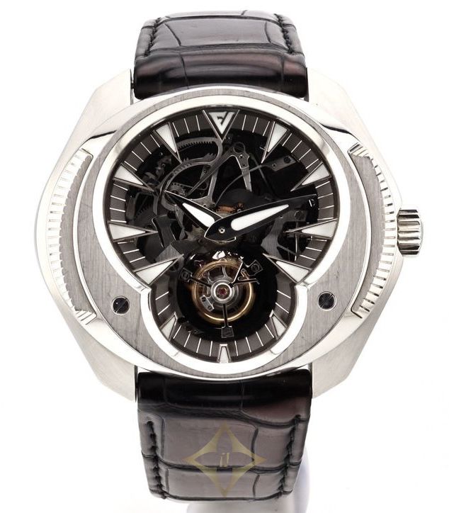 Franc Vila Inaccessible 1 of 1 - TOURBILLON And Minute Repeater - PIECE UNIQUE - Platinum - V000003 2015 PRICE: € 100 000 Basic info • Reference: V000003 • Year: 2015 • Movement: Manual Winding • Case Material : Platinum • Condition: Very good (Worn with little to no signs of wear) • Gender: Men's watch/Unisex • Scope of delivery: Watch only Case • Case Material: Platinum • Case diameter: 52 × 48 mm • Water Resistance: 10 ATM • Bezel material: Platinum • Glass: Sapphire Glass • Dial: Transparent • Dial numerals: No Numerals Caliber • Movement: Manual Winding • Caliber: - • Power reserve: 90h • Number of jewels: - • Frequency: 21600 A/h Bracelet/Strap • Bracelet/ Strap material: Crocodile Skin • Bracelet/Strap color: Black • Clasp: Buckle • Clasp material: Platinum Functions • Minute Repeater ——— Monaco Watch Company 36, Boulevard des Moulins, 98000 Monaco Landline: +377 97 97 08 42 WhatsApp: +33 6 80 86 55 57 Email: info@monacowatch.com