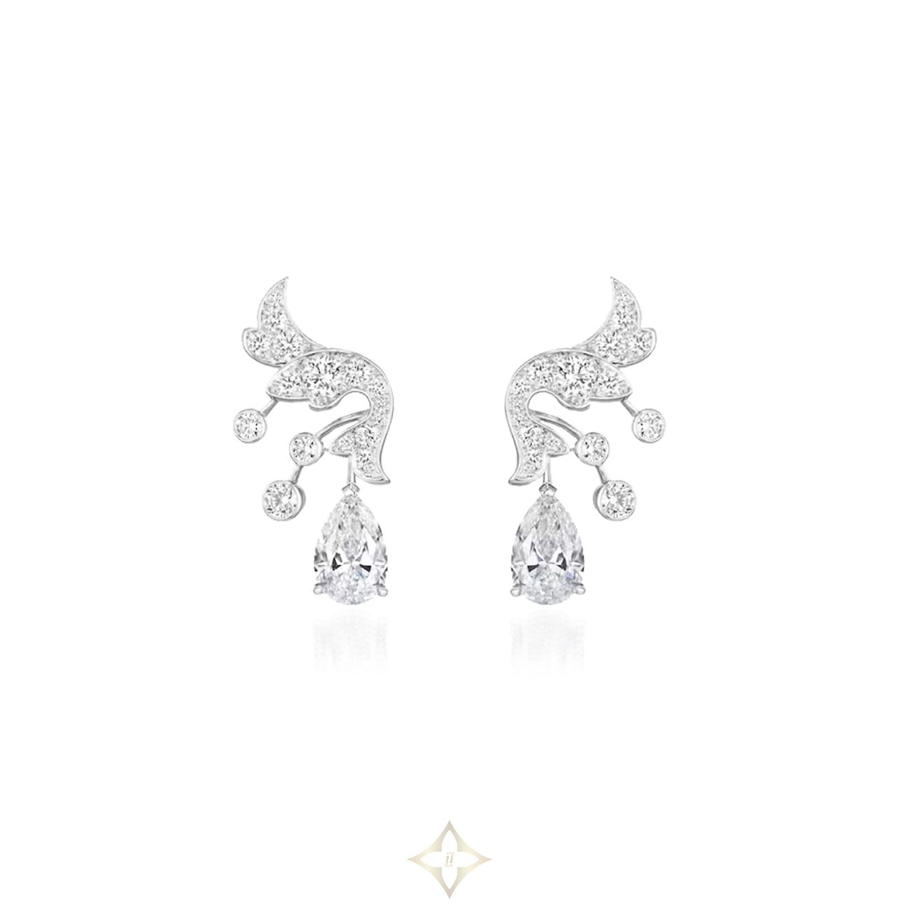 Chaumet has been renowned for its jewellery mastery for over 240 years. A true signature of the Maison, the fil-couteau technique makes the metal disappear in order to set the two pear-shaped diamonds, as if suspended in majesty. True to Chaumet's criteria of excellence, the two diamonds are perfectly paired. Rich in its unique expertise, this creation combines volume and lightness through its elegant and delicate openwork frame. The metal is discreet, allowing the radiance and purity of the stones to shine through.