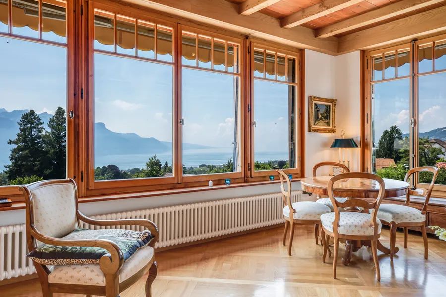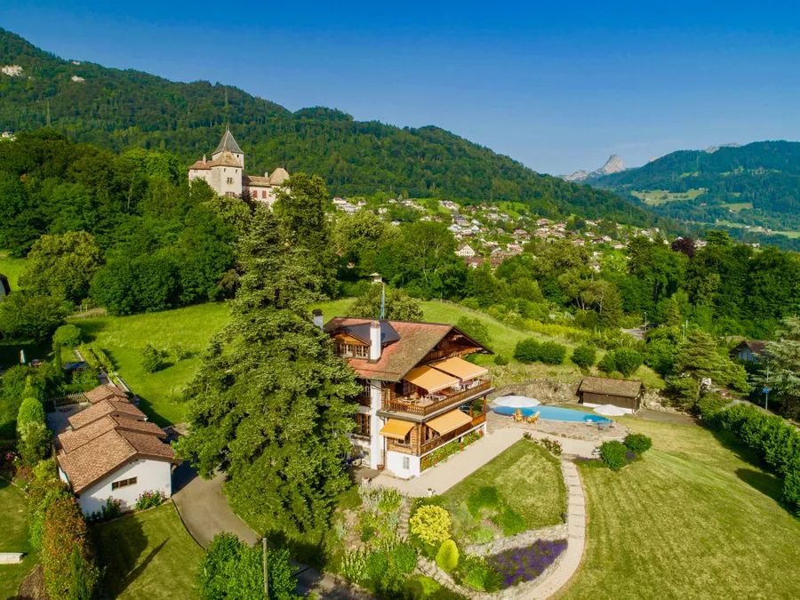 Set in an outstanding position at the foot of the Chateau de Blonay, this magnificent, detached chalet could not be better placed. Its overlooking position, private access lane and a 360° view from its unobstructed idyllic setting will not fail to astound you. The property faces due south, so you will have sunlight from the morning to evening.