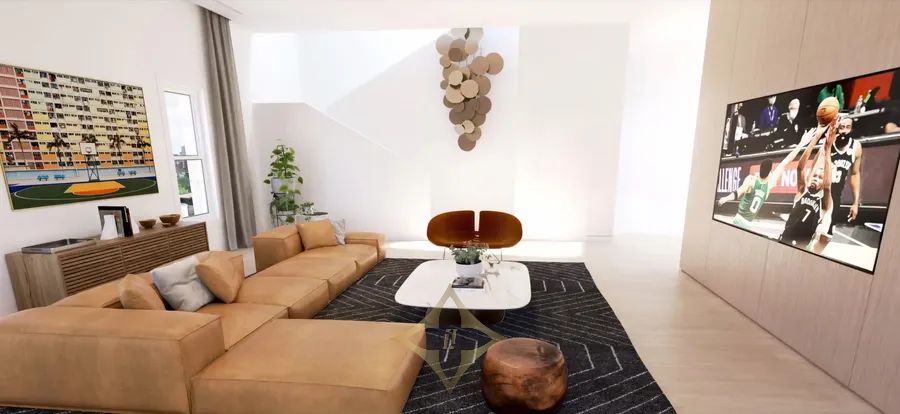 The proposed plans envision a street level floor with a potential for a private garage, a massive game room with a bar or gym, mud room, and staff/security office. The second floor comprises the main entertaining floor showcasing a proposed double height living room, powder room kitchen and dining room overlooking a planted terrace. The sensual staircase curves gently as it connects all floors–its glass railing seamlessly melding to the third floor overlooking the living room, creating a sumptuous experience of light and space.