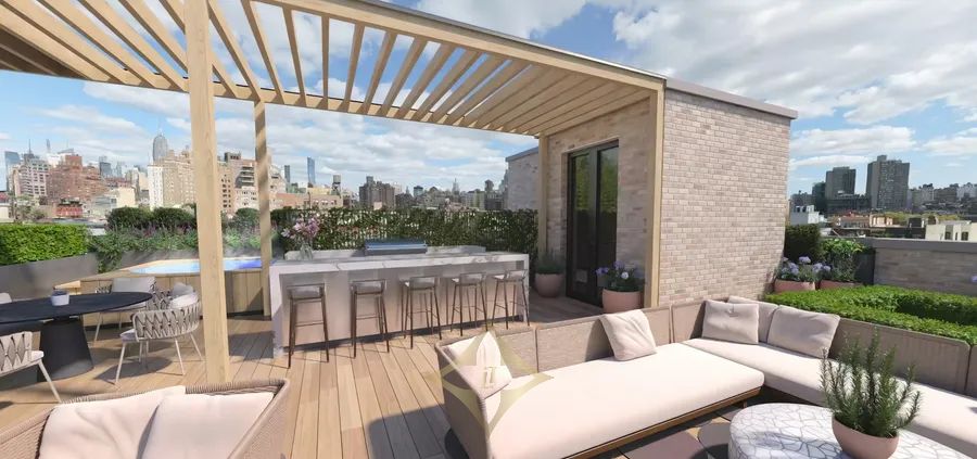 The roof terrace will be a showstopper. Already benefiting from amazing skyline views of the Empire State and Midtown Manhattan, the layout supplements the festive atmosphere with a long exterior bar, dining tables, lounges and separate seating areas to provide both a sense of intimacy and elegance when entertaining outdoors.